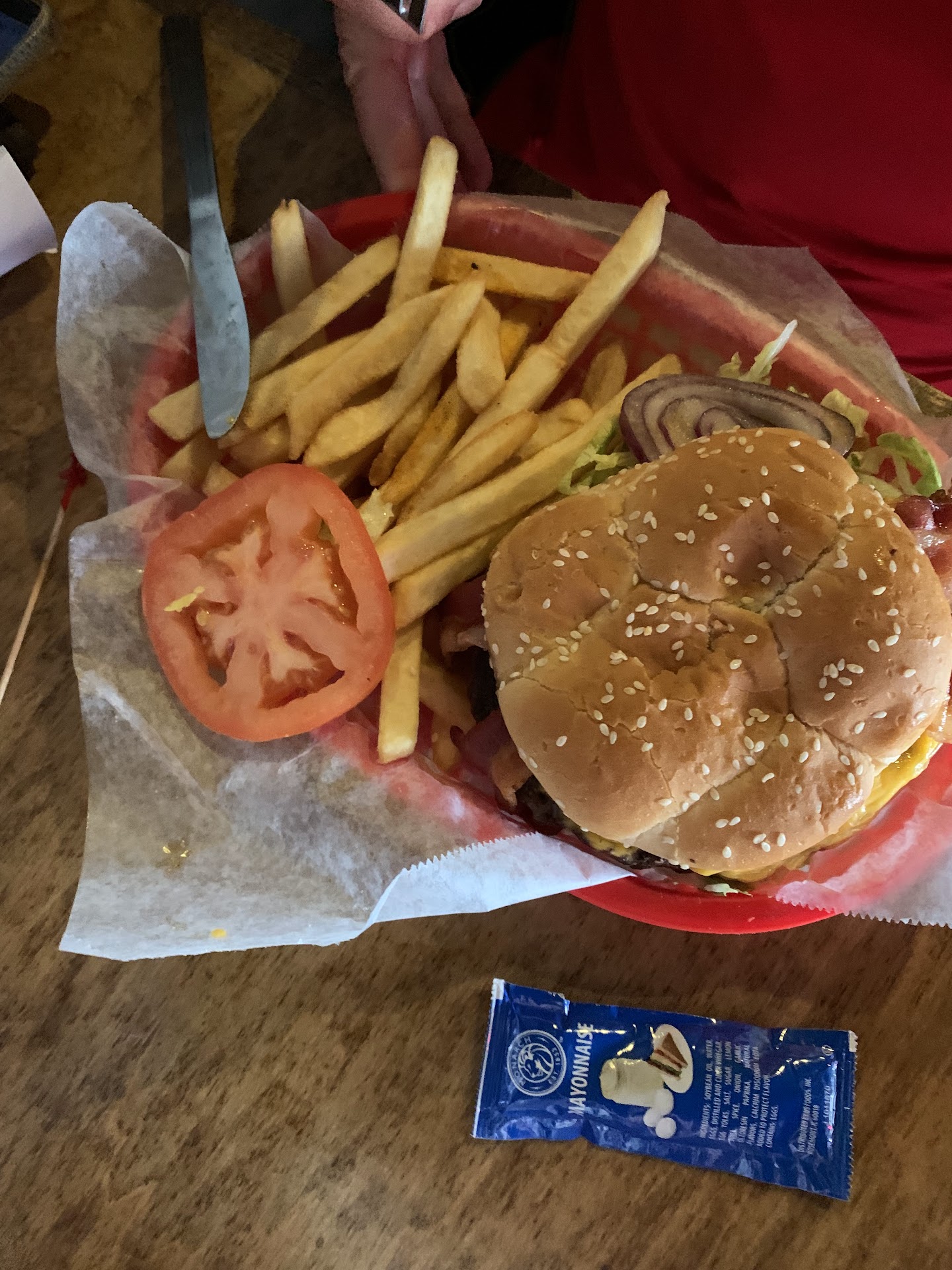 Our first visit to Gallopin Goose. Went there after reading good reviews. After seating ourselves we were brought menu's pretty quickly. After a few minutes our food & drink orders were taken. Me a Bud Light draft & her a vodka & Sprite. Beer seemed a bit warm & flat but I was thirsty. Her drink had so much vodka you couldn't taste the Sprite. Between the two of us we couldn't finish it. Food arrived quickly & hot. Me the green chili swiss burger with onion rings & her chicken bites with a basket of seasoned fries. The top bun on my burger was a bit soggy but other than that everything was great! High marks for the food. Service is another story. After bringing our food we never saw our server again. We could have walked out & no one would have known. Went up to the bar to get our check. Bartender asked where we were sitting. I pointed at our booth & returned to it. She printed our check & just left it on the bar. Never let us know it was ready. If we are in the area again we will give them a try. The food was...