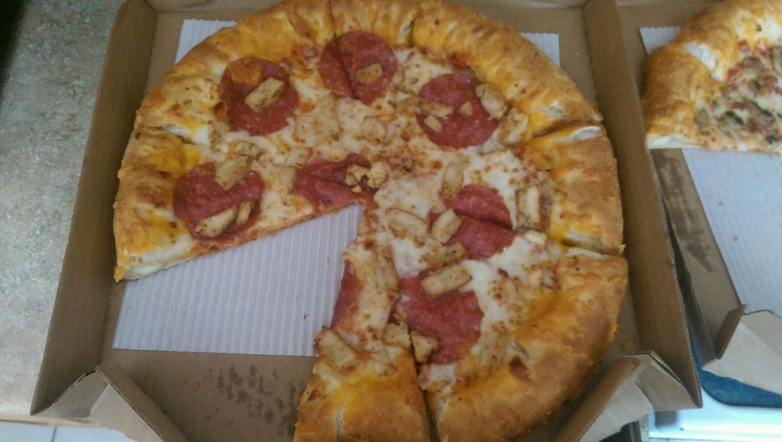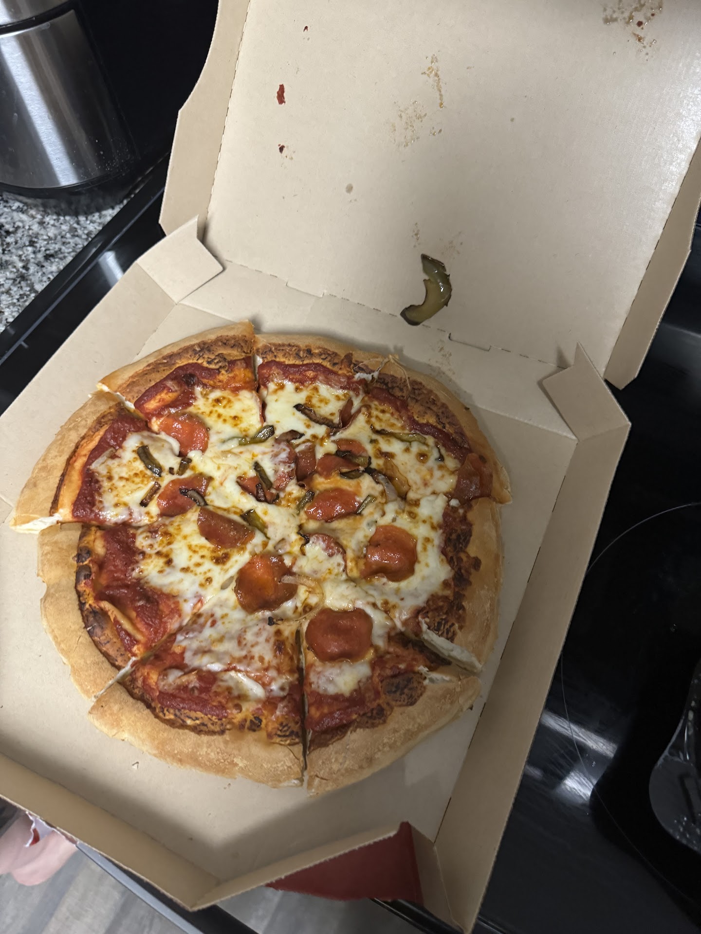 Read moreJust got two stuffed crust pizzas from there. Just two toppings. Both pizzas are cut like a 3 year old cut them. Have some slices that are enough for 2 people and other slices that wouldn't fill a newborn baby. On top of that, I got home (it said 10-15 mins pickup so i got there in 15 minutes) and my pizza is like eating raw dough. It's horribly under cooked like eating wet paper. I order there all the time and it's 9/10 really good. This time, just disgusting. Thanks for the soggy bread guys! Love the texture. (Sarcasm) Don't think I'll be ordering there anymore or very rarely.
