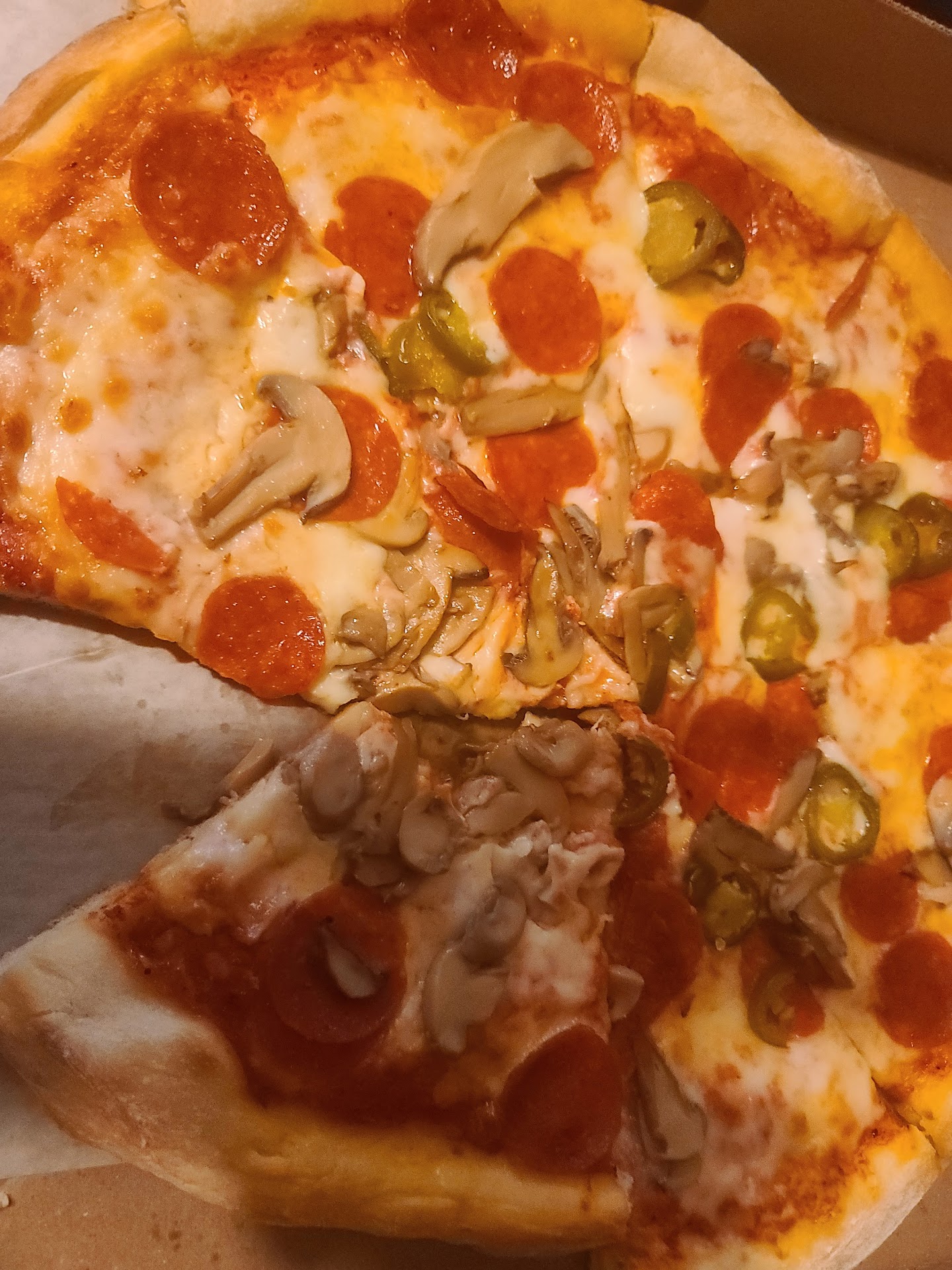 Read moreTruly not great. We had called in and placed an order on our way home from work. We were told 25 minutes. We got there nearly 45 minutes later but we sat in the drive thru line for more than a half hour with a line of cars behind us with zero explanation. Ran our cards (plural) and nothing. Had to give them cash (which I'm sure some people in line didn't have on them since nothing was mentioned on the phone about credit being down.) Got home and the pizza was soggy, cold, and truly not great. Not sure if we would return. Definitely wish they would open the dining room even just to come in and...