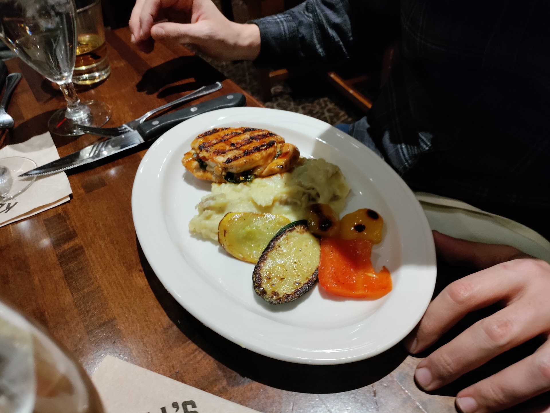 My wife and I showed up at 6:45 and asked if our party had shown up yet. I assumed that our reservations would be on the patio, so my wife and I went to the bar to have some drinks while waiting for our friends.