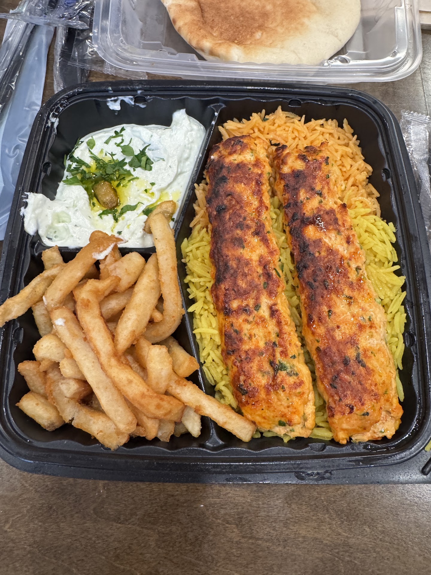 I went in to place a take out order the receipt got stuck (no receipt) which was ok I order Chicken Schwarma wrap and rice (simple) I had 2 people before me so I went back to my car an waited came back in the guy that took my order was leaving said nothing to me about my order an walk right pass me no customers were there it was two ladies working one was eating something(no gloves).. the other lady was prepping something. I could see my order was done. then lady she put on some gloves after the lady said something to her and she grab a container and started transfer the chicken Schwarma into it.(my order) then the phone rang she proceed to answer and took the call. then handed the phone to the other lady that was prepping food then she went to finish prepping the food that the lady was working on leaving my ORDER to the side...she even got plates for the chef I ask her how long would it take for my order which then she started to put my order in a bag. I felt Like she wanted to make me wait longer than what I NEEDED.the food was done when I came back in the store. I seen it on the ledge she didn't start getting my order til she seen me walk back in the store...I will never go back it felt like they were talking under their breath and watching me as if they didn't want to serve me I felt very very uncomfortable I also could see that the manager was entertaining a customer who had came in so I am not sure if he was aware of what was going on he could see I was waiting I was the lady with the Navy Blue Adidas... The Food was DRY I went before they change Names and the food was...