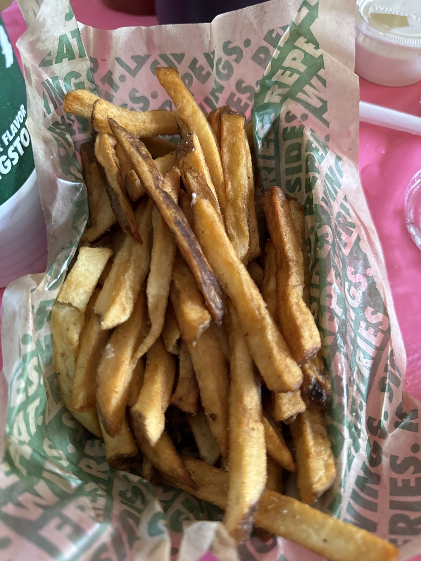 Read moreis there a higher rating i can give than 5 stars?? because i would give that. the food was delicious, and the store location was nice, but the most outstanding part of the experience was by far the customer service!! the workers were so kind and fast, and the work atmosphere seemed so joyful i almost wish i worked there, too haha. the person taking our order, Rya, was amazing and soooo helpful as it was my first time there and wasn’t sure what i was doing. she was patient and funny and jovial through the whole interaction (even while my friend and i were fighting over who would pay!). when we received our food, it was perfectly hot and juicy, and the fries were perfectly cooked (hard to find sometimes these days lol). we tried four different flavors of chicken wings and honestly i don’t think i could choose a favorite, they were all so good! i saw a few bad reviews and was skeptical before coming here about how the quality would be, but my expectations were exceeded in every way! i heard the management had some changing around recently, and i can see wherever it’s at now is working out incredibly. keep doing what you’re doing!! one thousand stars out of five, will most definitely be...