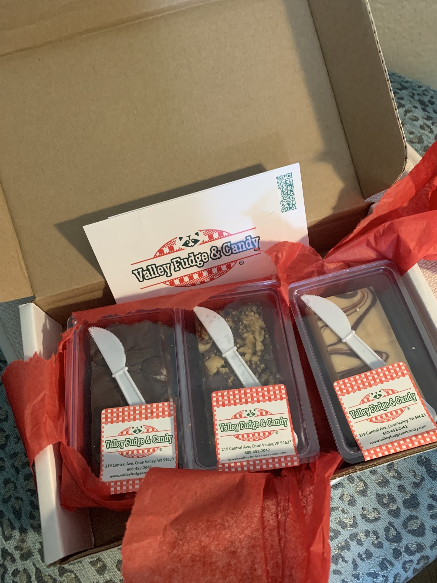 Ā Ā Ā Read moreI wanted something special and memorable for my mom's 96th birthday this week. I remember how we used to buy and share a square or two of fudge whenever we vacationed at the beach, I thought that would be a fun gift. Since we live in different states and can't travel, I went online to hunt down that memory. I came across Valley Fudge & Candy, and that was the best decision I could've made. I ordered 4 kinds for mom last Thursday, and they arrived at her house yesterday (Monday) all the way across the country in 4 days and in perfect shape! Mom was absolutely thrilled when pulling each from the box. She was impressed that each one came with its own little knife, just like the ones we used to share long ago. I was on the phone with mom as the package was opened for her, and enjoyed the thrill in her voice describing what she saw. Best gift ever! Thank you to Linda at Valley Fudge & Candy for helping me give it that...