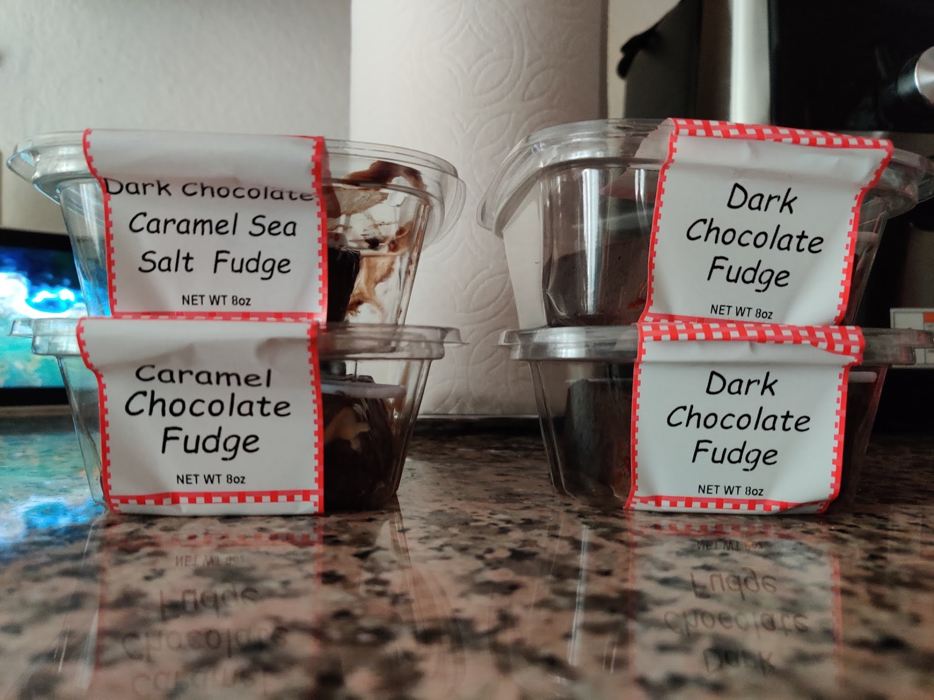 At this point I contacted them via e-mail and they got back the next day saying they'd send out the replacement, which was very nice, so I replied thanking them and telling them I tried some of the fudge we did get and it was very good (just to keep it casual and nice). Almost 2 weeks later and I sent them another reply as a gentle nudge; just asking them for any kind of tracking number so the fudge doesn't sit out in the mailbox too long and liquify completely. That was 4 days ago and I've gotten no response still, which makes me think they are just ignoring me.