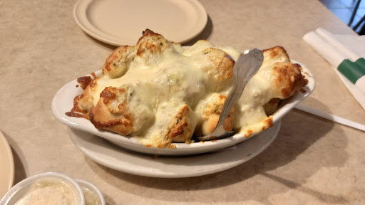 As many of the reviews say here, GET THE THE GARLIC ROLLS (with cheese!) OMGGG! They are probably some of the most delicious things I have ever eaten. The pizza sauce is made in-house and is AMAZING, and I suggest you get it on anything with red sauce on it. Their red sauce is also very good, but that pizza sauce is somethin else omfg.