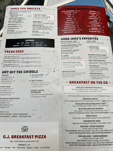 GJ is open for breakfast, lunch and dinner. The menu is similar to one you would see at a diner.