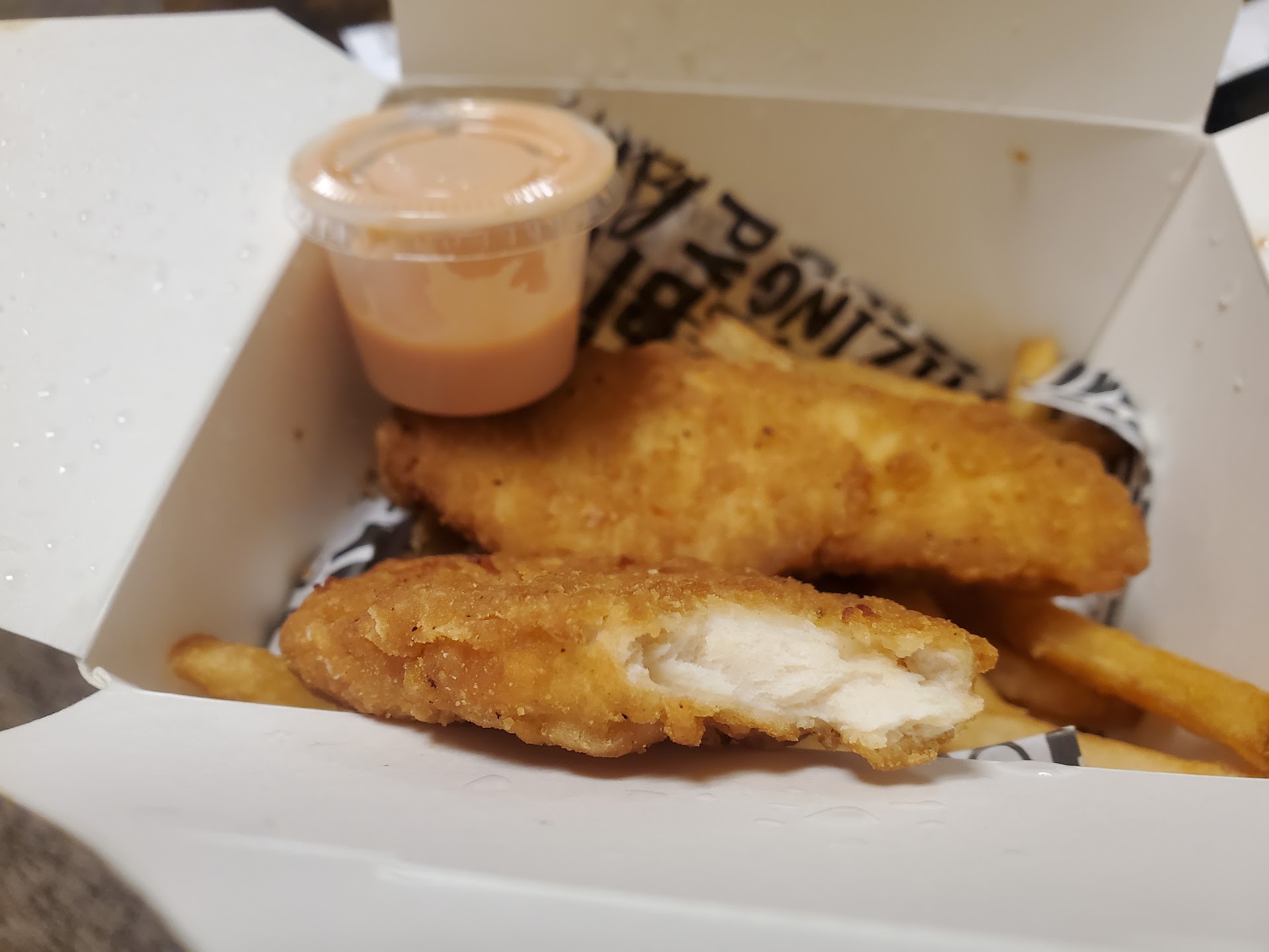 Read moreOrdered chicken tenders and fries, jalapeno poppers and their honey spicy chicken sandwich. It was like eating at an elementary school cafeteria all over again, but I paid an arm and a leg for it. The tenders and chicken sandwich were frozen and processed meat. The fries were cooked wrong and tasted like grease. Poppers way over cooked. Paid for the fry sauce as well and they came in the smallest container. Do...