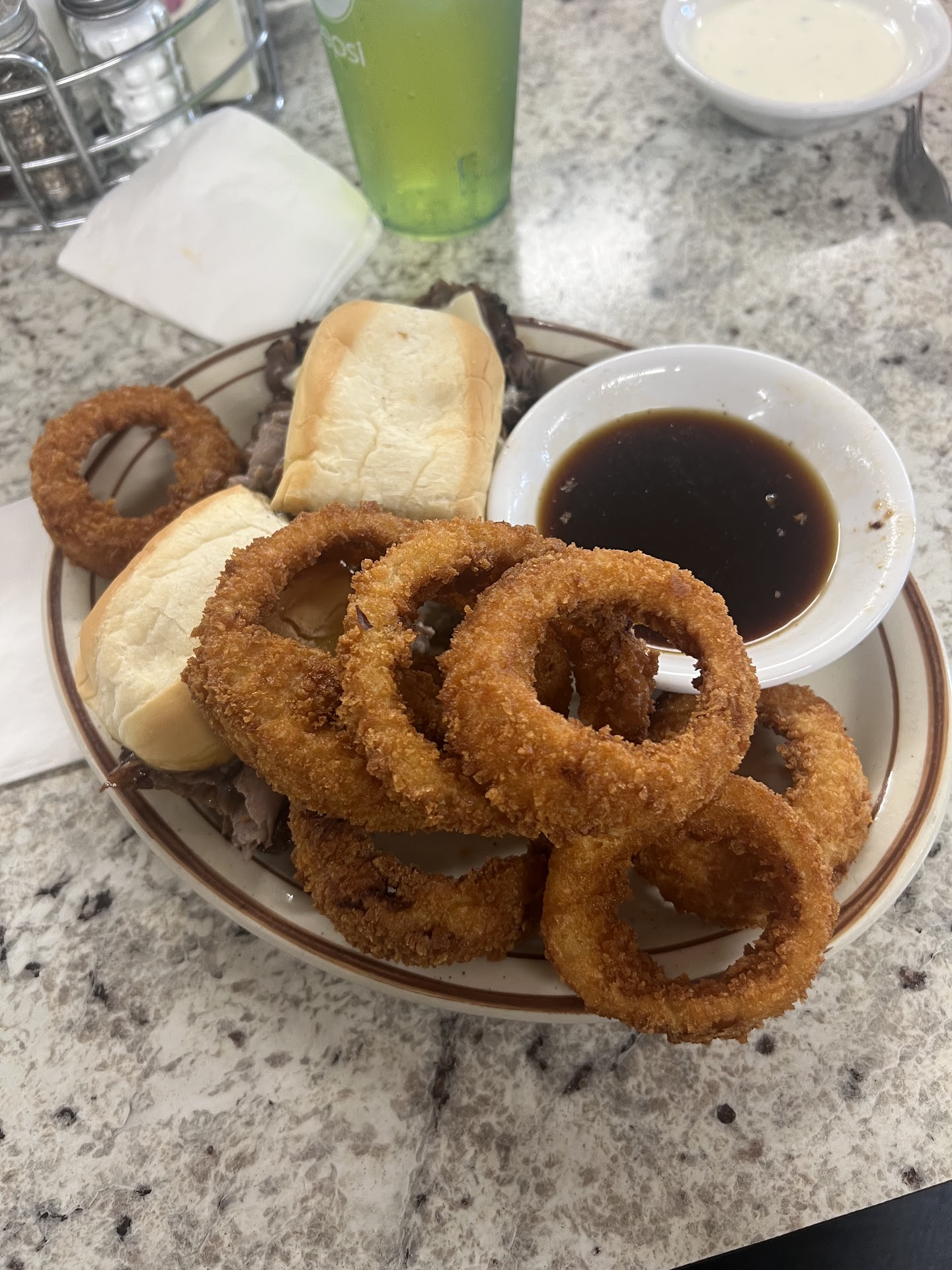 We were there for a family Sunday breakfast. There were 6 adults and 1 toddler. The food was great and service was okay. The server was busy and the cooks were also. The food was great bar food and would have been super fantastic if you were hungover.