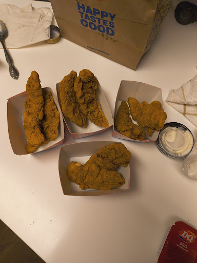 Read moreI went through the drive thru with my friends. We ordered cheese curds and a 6 pc chicken strip basket. My friend bit into one of the cheese curds, and it was frozen solid in the middle. We went back to remake the order and was told that the issue with the cheese curds was caused by a supplier. Absolutely no accountability. How would a supplier affect how you cook items in your restaurant? While waiting for our order to be remade, we investigated the cheese curds further by smelling them. The oil they were fried in was months old, and it was apparent by the smell. Old oil is harder to get up to the correct temperature to thoroughly cook fried foods. Won't be surprised if this restaurant goes up in flames from their oil...
