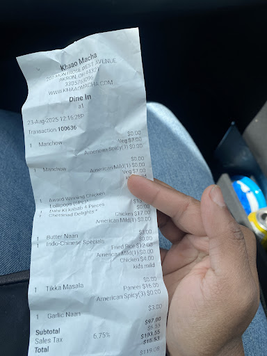 Read moreOur party of 8 had an outstanding dining experience tonight. Our server Dharsh ensured that our meal was perfect, even calling us before we arrived for our reservation to make sure the table he selected would be comfortable for everyone in our party. He made great suggestions for our us to try and made sure our meal didn't contain a specific allergen. We ordered half our items "Level 2" and half "Level 6" and he made sure to keep them straight as he brought them to the table. He was kind, enthusiastic, and concerned about making sure everything was to our enjoyment. Even the chef came out to check in with us - we were very pleased! The cuisine is Southern Indian - Chinese Fusion - so naturally the best flavors the world has to offer, and their execution is wonderful! The restaurant is in the lobby of a hotel so there were several hotel guests walking past the dining area, but the environment is pleasant and they have used the space well. We tried a Gobi dish, a Bhindi masala, Chicken Vindaloo, Dum Chicken Masala, Paneer Tikka Masala, jeera rice, Noodles with Chicken, a few different naan, Methi Matar Malai, and a few other dishes to boot. Dharsh even brought out a couple desserts for us to try before left. Wonderful job Khao Macha! We will be back and we wish you great success in your upcoming restaurant endeavors...