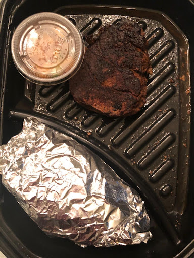 Read moreI was able to order online/phone my meal for Friday night. I ordered the outlaw ribeye well done with mushrooms, a baked potato and a side salad with ranch dressing. It was easy to order online. You could also add gold dust on the side (steak seasoning powder) or write in your e.t.a. if needed. Everything went well... however, my quoted time for pickup was 6pm... I know that they were busy. The line was at the door, but that just looked like a party of eight. I pulled into the designated space and called the number on the sign. First no answer... 2nd I believe that they answered and hung up on me... So, I went in... I held the door for customers to come out (6 total) and then I walked past the people standing and waiting to the cleared out bar area, that was the staging area for take out. I flagged down one waitress to assist me with my take out order at 631p.m. She pulled a manager, who barked out orders to someone else that bolted for the kitchen. I stood by the staging area and waited by other orders that was sitting on the bar... it was extremely busy... Finally, a girl passed a white plastic bag to a young man that called my name. Everything including the tip was already paid. I collected the bag from the young man and thanked him and headed for the door... it was 636pm. Wow, what a non socially distanced adventure. The food was good and I posted a picture. I usually order well done so that it will be at least medium. Today, it was well done! I was shocked....