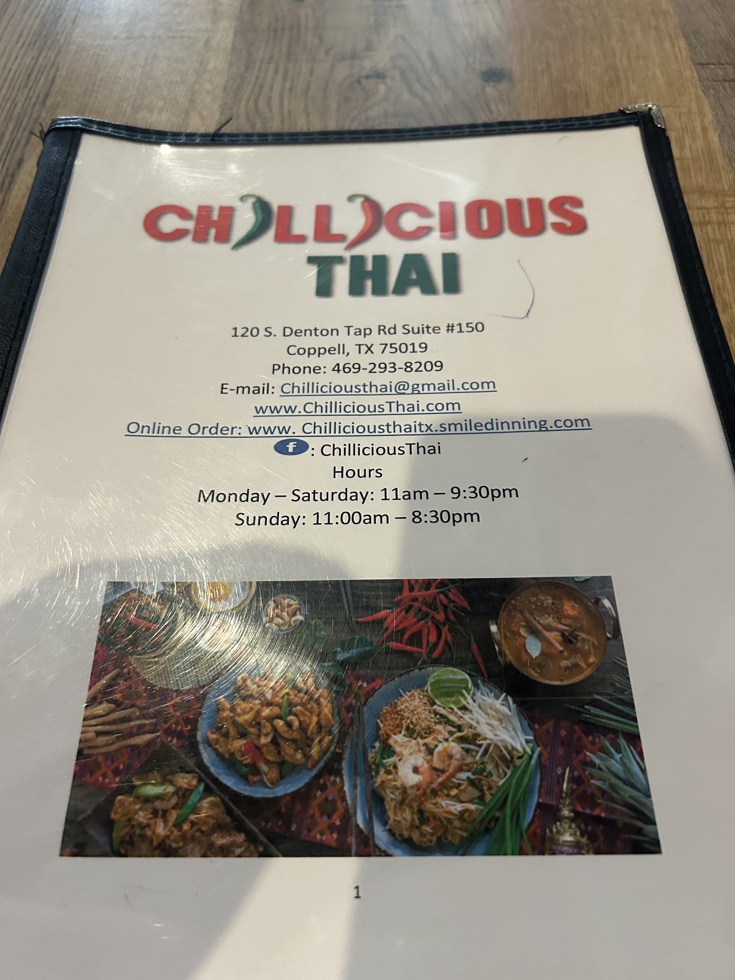 Read moreFirst time having dinner at Chillicious Thai in Coppell tonight. Atmosphere is welcoming, servers are courteous and the food came out in perfect time.