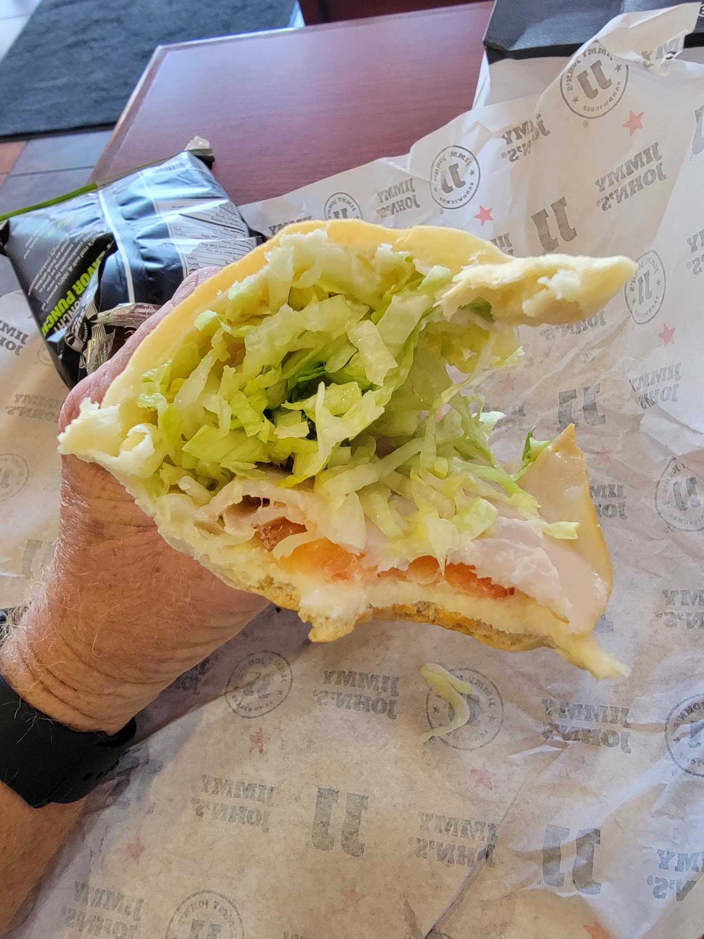 Read moreFirstly, I walked in at ~8:10pm and nobody greeted me. The nice cashier took my order and I went to sit down. A few minutes passed and I got my sandwich. I have never seen a jimmy johns sandwich with less filling in my entire life, but it still tasted good. Then I witnessed the cook (black athletic tee-shirt and white hat) throw away every extra bread from the day before over 40 minutes before closing, then I asked him if he threw the loaves away (not sure if he did) and he lied to me and said they used them all up, after me just seeing 6 loaves on the counter. Then I look into the kitchen and saw that he had thrown them away. This is unacceptable behavior. Southlake location is 1000x better. I would recommend ordering from there if you're getting lunch, they're not as stingy with serving sizes.