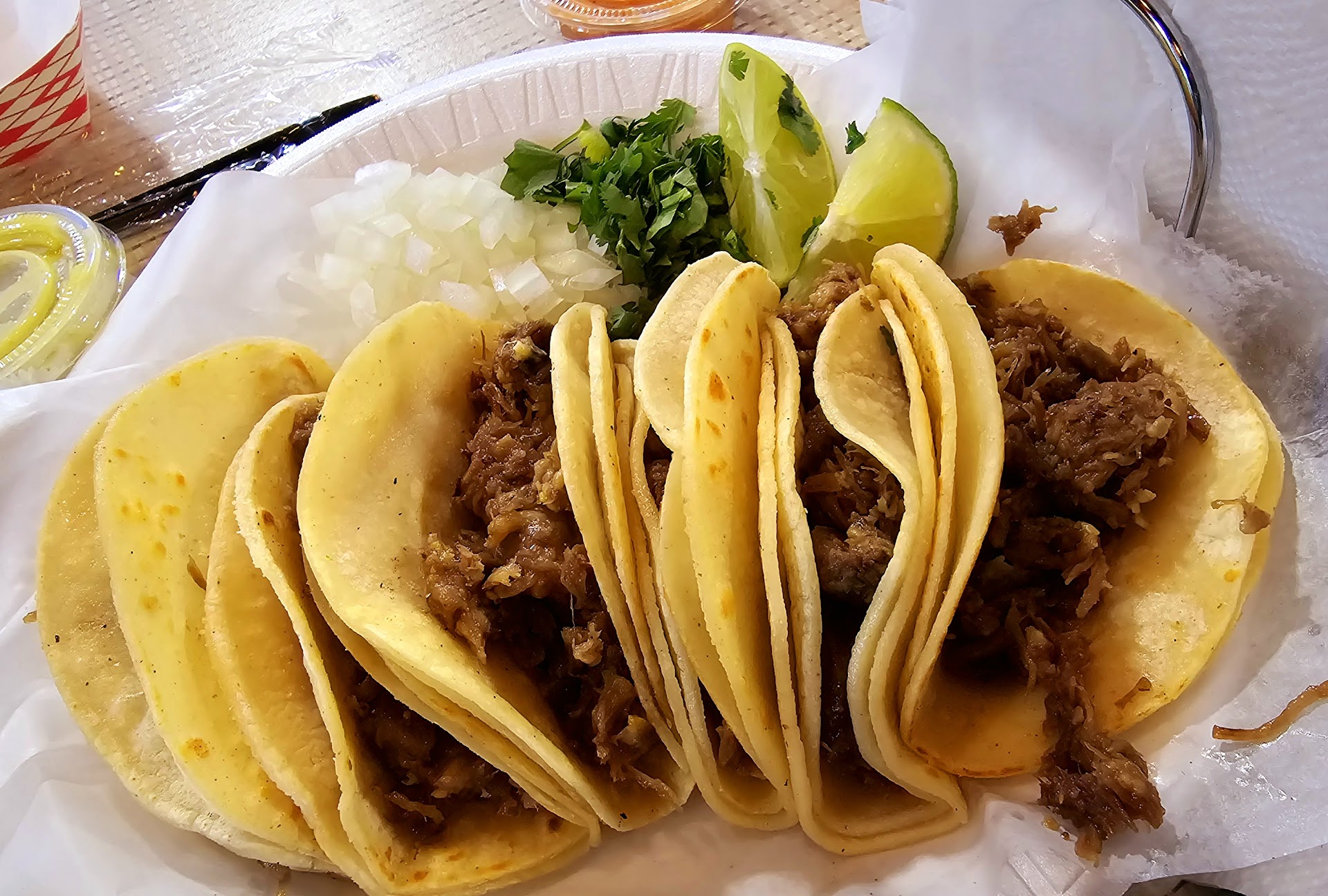 Read moreHave never written a bad review before and this broke new grounds. Borderline school cafeteria food ordered the flautas as well as the taco plate the âsour creamâ on the flautas was clay like similar to icing and it seemed like they had been sitting under a warmer for a while the chicken was dry and hard. The taco plate was better but not by much (at least it was kind of edible) it came with four tacos with onions, limes, and cilantro on the side which were fresh at least however the tortillas were not, the meat (barbacoa and ground beef) had barely any taste, was stringy, rubbery, and some parts I was unable to chew. After trying to pour some salsa on one of my tacos it came out in a clump. Couldnât not finish either dish. Came out to a total of $23 have had much better for cheaper. Will not...