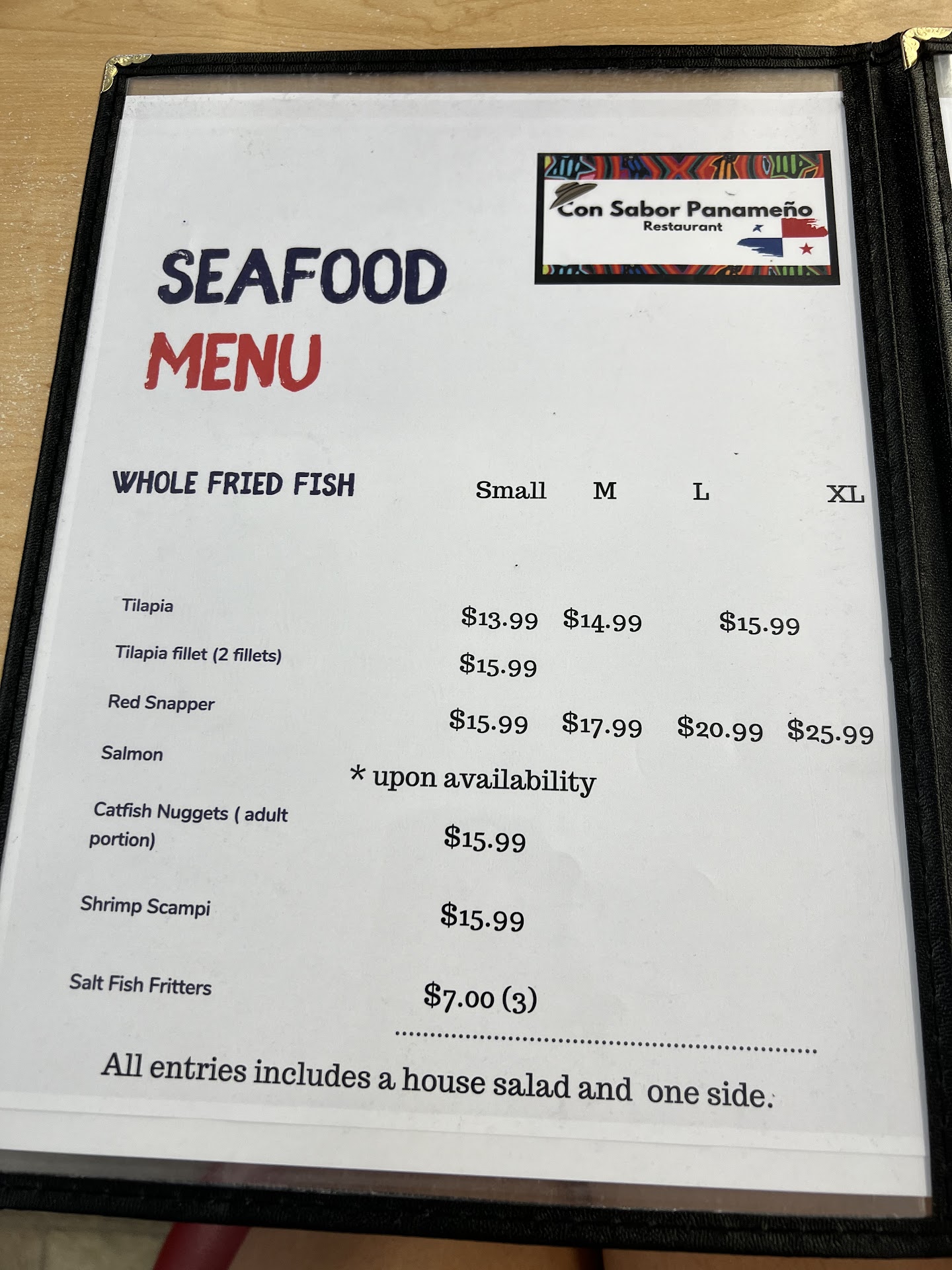 Comer aqui fue toda una misión.Lleganos, nos sentamos y esperamos y esperamos, nos dan el menú, nos dice que el especial del dia era Sancochado Dominicano 🤔y Gumbo🤔 pero este lo describió cómo una sopa con todas las carnes, era sábado echo lo que le quedaba en la nevera por que Domingo está cerrado, lo cual es válido pero esos eran los especiales. El menú lo abres y te confundes a penas tiene comida que puedes ordenar. Ok en lo que miramos el menu nos traen las bebidas , pedimos jugo de parcha o maracuya como lo llaman en otros países, el primer sorbo y aquello era agua la parcha inexistente solo el color, pues estoy esperando que alguien venga a tomarnos la orden y para dejar saber lo del agua con color, pasan maybe 15 minutos esto es lo mínimo, nos retiran los vasos , pasan mínimo 10 minutos regresa la dueña con dos bebidas nuevas, le dije a mi esposo mira no voy a discutir con ella olvídate agua con color nuevamente 🤦🏽♀️ la dueña jura que lo arreglo. Vamos a ordenar después de mínimo 40 minutos desde que llegamos y te cuento que éramos los primeros en llegar, mi esposo pide un red snapper y la dueña salta y nos dice que no tiene nada entero solo tilapia 🤔 a lo cual ahí digo wow y que mas tienes por que del menú que tienes consiste de Sea food , pollo pechuga pero me la podía empanar y chuletas eso fue lo que me ofreció como comida frita 🥴 yo para al menos comer algo le digo pechuga empanada con arroz blanco y que tienes de habichuela y me dice lentejas pero estoy haciendo arroz con habichuela, miro a mi esposo y el entendió mi mirada, respiro hondo y le digo pues arroz con habichuela y mi esposo arroz blanco con lentejas, oh el pidió de aperitivos para el unas canastas con camarones, el me dijo que estaba bien pero eran algo básico , nada en especial. Pasan 15 minutos mínimo llega el plato se mi esposo, el es una persona que con gestos yo se como está la comida y esta es la segunda vez que yo lo miro y no tenía ninguna expresión en blanco, oh y solo llegó el arroz con la tilapia dijo ella que empanada 🥴 pasan 10 minutos mínimos y llegan las lentejas amogolladas parecían puré , las arrastró toda la semana y nada tenía sabor parece que alguien entró la noche anterior y le robaron los condimentos 😂 pero lo mejor está por venir!!! Y se preguntan de mi comida ? Pues la escuché machacando el pollo después que ya le habían traído la supuesta comida a mi esposo y ella bien emocionada me dice te estoy haciendo la pechuga la eche a freír y se tarda un poco, eso era lo que tenía que hacer antes de comenzar con la de mi esposo que es pescado y se cocina más rápido 😮 mi esposo se termina de comer la tilapia con arroz blanco pelado’ y aún mi comida inexistente. Bueno llega la mía les digo que de Veras alguien le robó los condimentos el arroz con habichuela nada de nada de sabor ok, la pechuga sin sabor y quemada por debajo le pedí ketchup y ni con eso se arregló. Mi esposo pide una caja para llevar y yo lo miro y me dice inventa algo con el pollo cuando lleguemos a casa 😅 y no pienses que yo no cocino por qué yo cocino hasta piedras si me las traen pero nosotros cuando salimos a comer nos dimos la tarea de ir a restaurantes de diferentes culturas y probar cosas nuevas. Pero si se dieron cuenta? No había nada Panameño, nada que representara la cultura Panameña, solo tenía comida que pude yo hacer en casa y quedaba 1,000 veces mejor de lo que se nos sirvió ese día. El nombre del restaurante Con SABOR!!! Panameño!!!! Es un chiste por que la comída no tenían sabor y mucho menos nada panameño. Así que si van después no digan que no se les advirtió, los reviews de 5 ⭐️ es la mayor mentira. La peor comida, $45 dólares regalados y punto.este ..este es mi segundo bad review. A un restaurante y Se decir lo bueno pero...