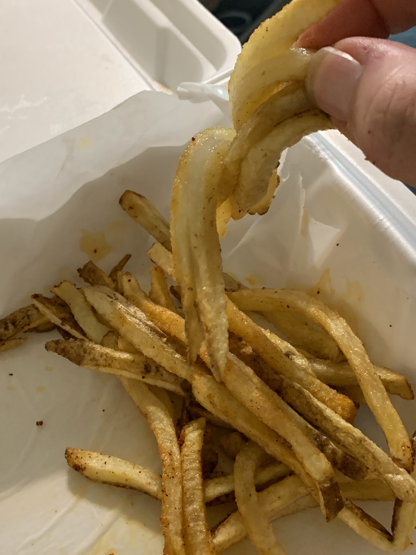 My friends burger was the only part of her meal that had seasoning on it at all. That seasoning was salt. TOO MUCH salt. Her fries had the same issues as mine.