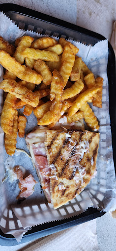 Read moreDue to the train depot unloading scenic travel passengers in town, this place was packed with long ordering lines. We got the last table available outside (inside was standing room only). You order at the registers and then someone finds you and brings you your food. You fill up your own drinks. Where the drinks are is also where the staff is walking back and forth and people for the bathrooms. It is such a narrow area, that you have to stand side ways to let others pass. Needless to say, you will not want to get a refill on your beverage! The staff that we encountered were very friendly. The food was not that great (at least what we got). We both got the club panini with seasoned fries. The fries were fine dipped in barbeque sauce (sauces other than ketchup, mustard, and mayo, are charged $.50). The panini was not something that either of us would get ahead. I thought it was okay, my husband thought it was terrible. The panini was not a panini (which is typically bread). It was a flatbread made into a panini, and it was hard and tasteless. The sandwiches were drowned in pesto mayo. It was almost impossible to eat, as it was just pouring out of all ends of the sandwich. Maybe we will try here again, but different...