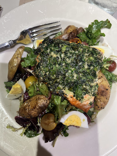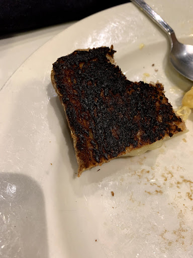We were seated and behold waited a good 20 minutes, my wife stood up and walked to the person at the entrance. Not knowing that we might have not order like before at the counter, she asked the young lady. Afterwards about 10 minutes a server approached. Order for appetizer and drinks taken, my wife’s soup came semi warm, spoon was a dessert spoon. When the server went by we requested a larger soup spoon she advised that there were non available all were being washed. My Onion Soup was not brought until 5-10 minutes later. Also a burnt Calamari delivered to the table.