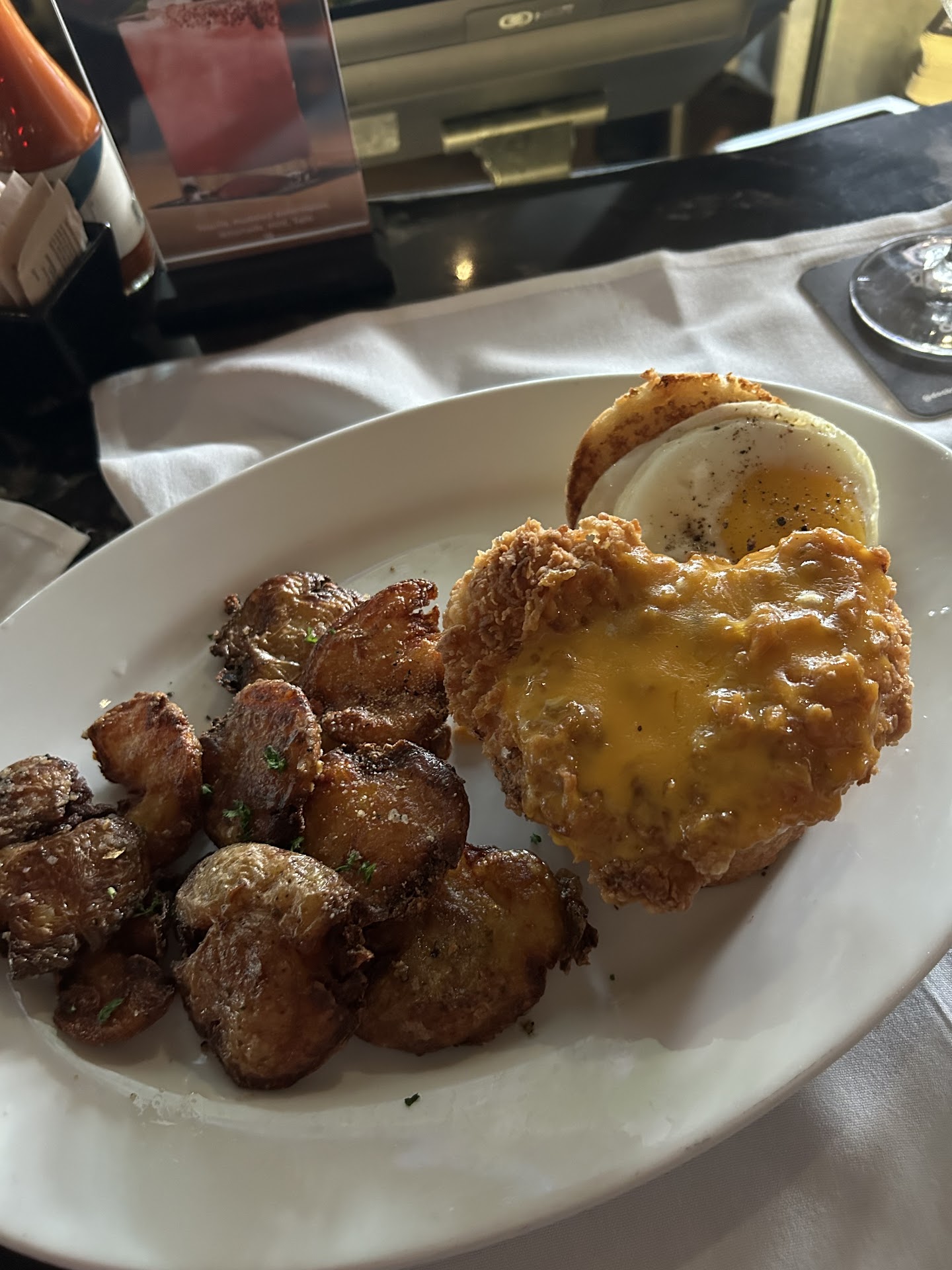 I was in Coral Gables for an event so I was excited to try Doc B's after reading reviews and hearing friends talk about how good it is. Unfortunately, it's a no for me. Service was attentive but TOO attentive. Like coming by way too many times to check on us. Trying to pre-bus our table when we had only had half our appetizer. This happened twice! Our server even said, "well your meal is almost ready to come out". I'm not sure if it's Corporate's policy not to have an app and a main course on the table at once but seriously I don't care and I don't want to be rushed. Drop my main course and I'll figure it out but I'm not going to let you toss my paid for app! Even a food runner insisted on taking my app plate before I was ready! What is wrong with these people?!? So we started with the guacamole which was recommended. It lacked overall flavor so salt was added to each bite. It definitely needed seasoning. For our main courses we had chicken parm and what was supposed to be the southern fried chicken but instead chicken and waffles came- my husband did not want to send it back. Chicken parm was just average. The chicken was hot. The pasta was cold and the sauce tasted jarred not fresh. My husband said the waffles were tasty but the chicken was overcooked. Our server came back several times, which I get is nice but my husband takes his time while eating and almost always clears his plate. I think by the 4th time, she realized she just needed to leave us be. We also were gluttons for punishment and split dessert- oreo ice cream. It was good but what really was the worst part was our server's assistant dropped spoons off to the table before our dessert arrived and placed them on the dirty table. Not on a napkin or even a small plate. It was gross and just lacked basic etiquette. Then our server came by and took a rag and wiped the table down (lord knows where that has been) but avoided the spoons. We just looked at each other and laughed uses our water and cleaned the spoons ourselves. Food-wise and service wise the Doc...