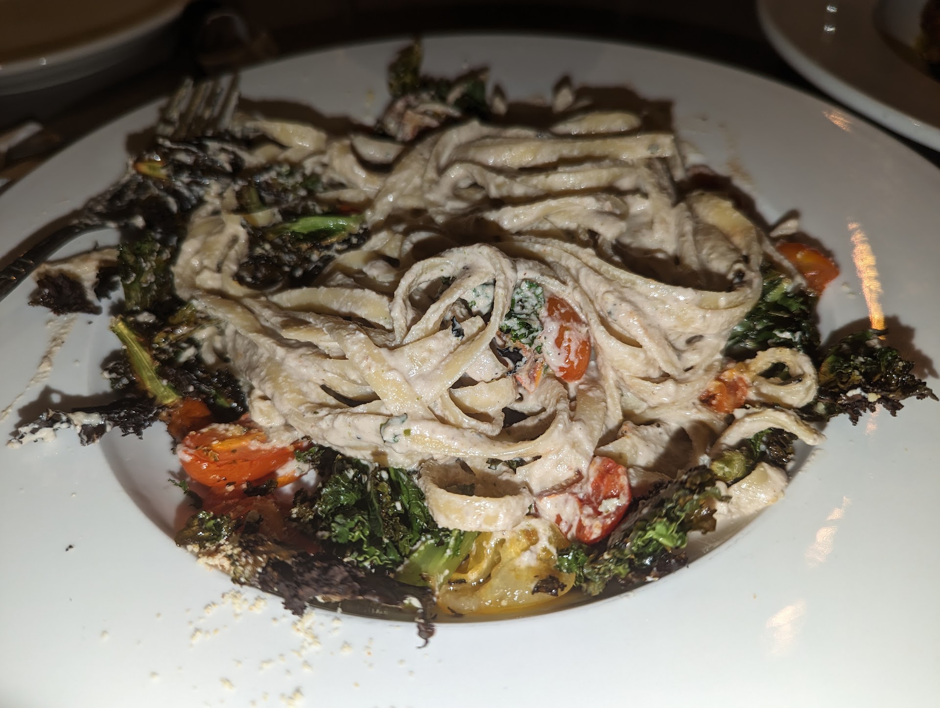 Read moreMy family and I dined at this restaurant a few nights ago, excited to try Italian food with vegan options. However, the place, which claims to be Italian, had a menu riddled with errors in the dish names: 'capressa' instead of 'caprese', 'polenta fritti' instead of 'polenta fritta', etc. This made us realize that it wasn't created by an authentically Italian chef (we're Italian ourselves). When the waitress came to take our order, we discovered that everything we wanted was sold out (we arrived at 8:30 pm, and the restaurant closes at 9 pm, but at 9:40 pm, when we were about to leave, a new couple came in for dinner). We had to settle for the 'pasta il forno', which had nothing to do with the real Italian pasta AL forno. Instead, we got a plate of pan-seared fettuccine with a flavorless tomato sauce. The stuffed mushrooms I had to order as a fallback were nothing special, nor was the caprese, which didn't have the look or taste of a classic caprese, although the vegan cheese (presumably handmade) was good. Even the tiramisu was sold out, and when I asked, 'Could I find it tomorrow?' the reply I got was, 'Yo no sé, yo no sé' (= I don't know) with an unprofessional giggle. The bill was steep! The prices were definitely unreasonable, especially since it's not even authentic Italian food, but a distant and mediocre interpretation. We...