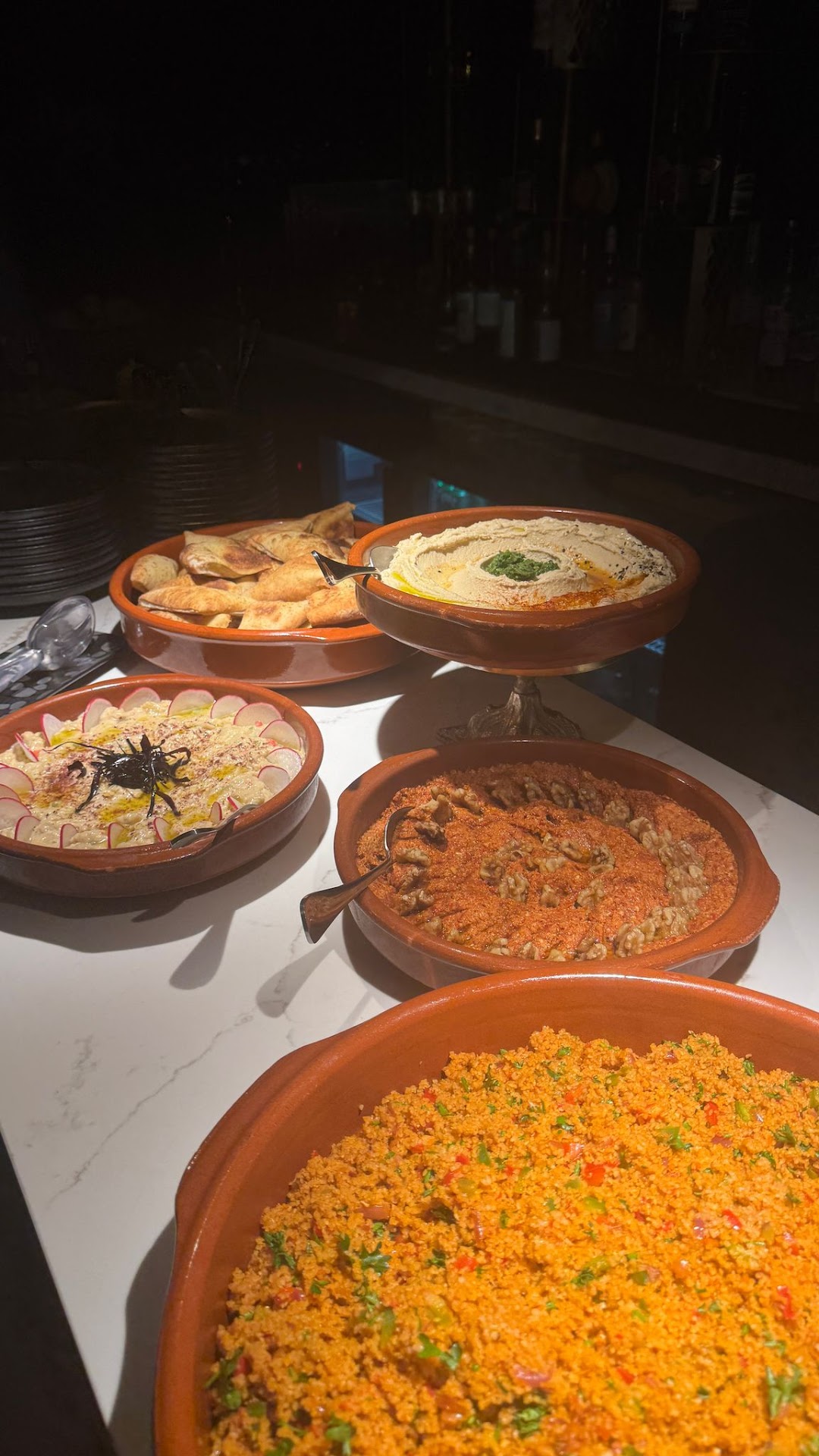 Read moreMy close friend and I were in Key Biscayne for the weekend and had the absolute pleasure of the “tasting experience” at Levant in Coral Gables. It was truly a culinary experience to remember – we loved it. From the moment we walked in, we were greeted with warm smiles and a welcoming/trendy atmosphere that set the tone for an exceptional evening. The flavors of the food were out of this world, and every dish was a masterpiece in its own right. It was paired with the most delicious cocktails. The waitress, bartender, and chef made our experience so special and went out of their way at every step. They came to the table, got to know our tastes, and really took that to heart to ensure when they created the dishes. We learned through the process as well. Our waitress was an absolute gem. She was not only attentive and knowledgeable but also brought a genuine enthusiasm to our table. Her passion for the food and the restaurant was evident, and she made us feel like honored guests. We felt like she was genuinely excited to share the culinary journey with us, and she was so accommodating – we could have had more of any of it (but we were so full!). Lastly, let me tell you about the dessert. Whatever you do, do not skip dessert at Levant! The Baklava we had was, without a doubt, the best we've ever tasted. The layers of flaky pastry, the honey-infused sweetness, small crushed pistachio and the perfectly balanced nutty flavors were a revelation. That and the herbal tea from turkey was the ideal ending to a fantastic meal, and we cannot recommend it enough. Levant in Coral Gables is a true gem for anyone looking to savor the flavors of the Mediterranean. The combination of exceptional food, a passionate chef, and a wonderful waitress made this dining experience the best of...