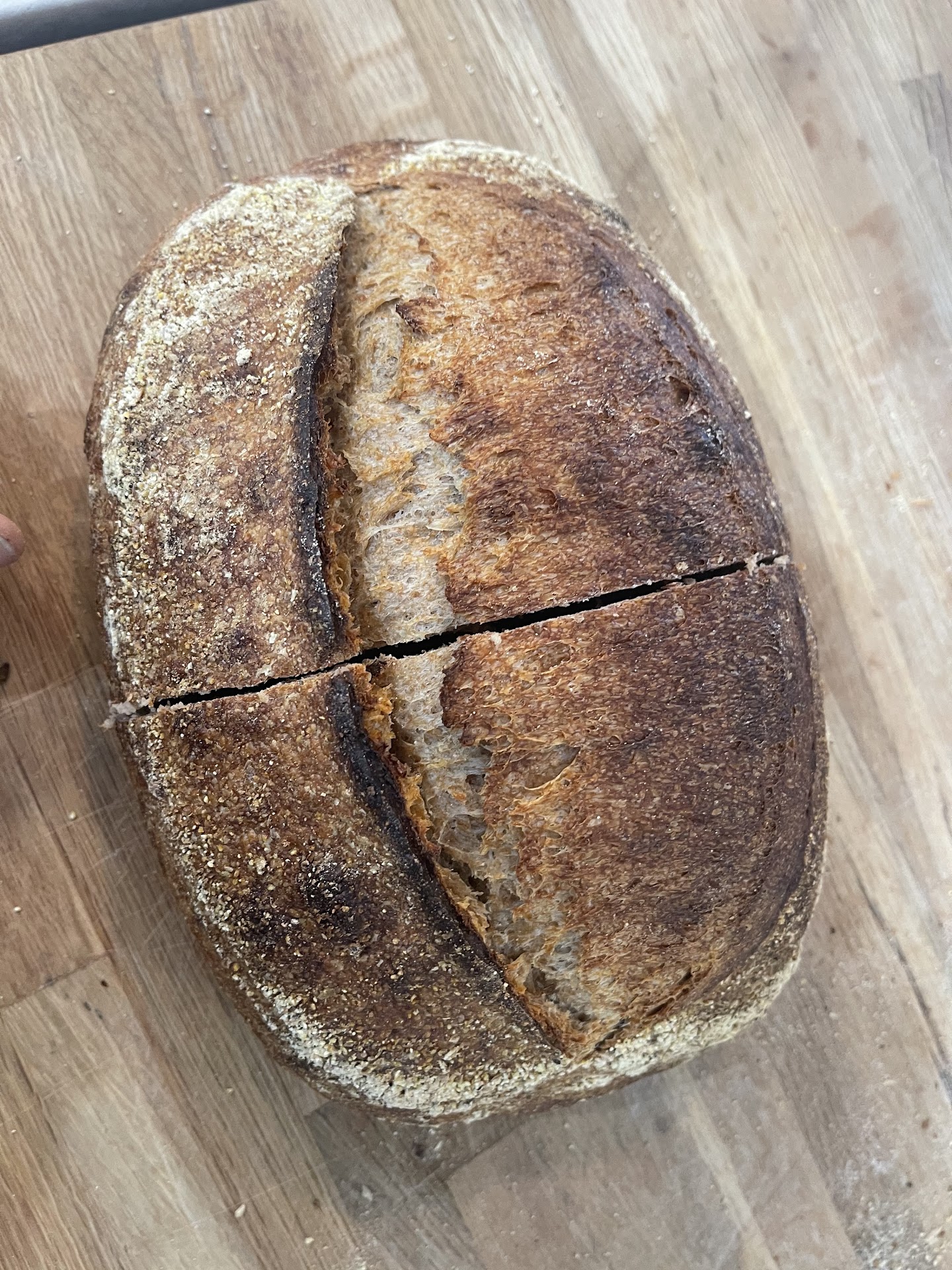 The country blonde had an amazing soft tenderness and a somewhat open crumb that was mostly even, except for a couple of “mouse holes” (which I honestly liked because it was the perfect compartment for stuffing with their delicious chicken salad). I could taste the tang from the fermentation before it even hit the roof of my mouth; the flavor was undeniably complex. Crust was good too, not too thick but still plenty of crunch; it had a nice little crispy ear which is just a lovely bonus.