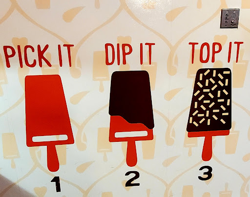 It's a cute little shop that offers corner seating. First thing you see when you walk in is the freezer holding all of the popsicle flavors in a neat line. They have pretty much everything you can think of!