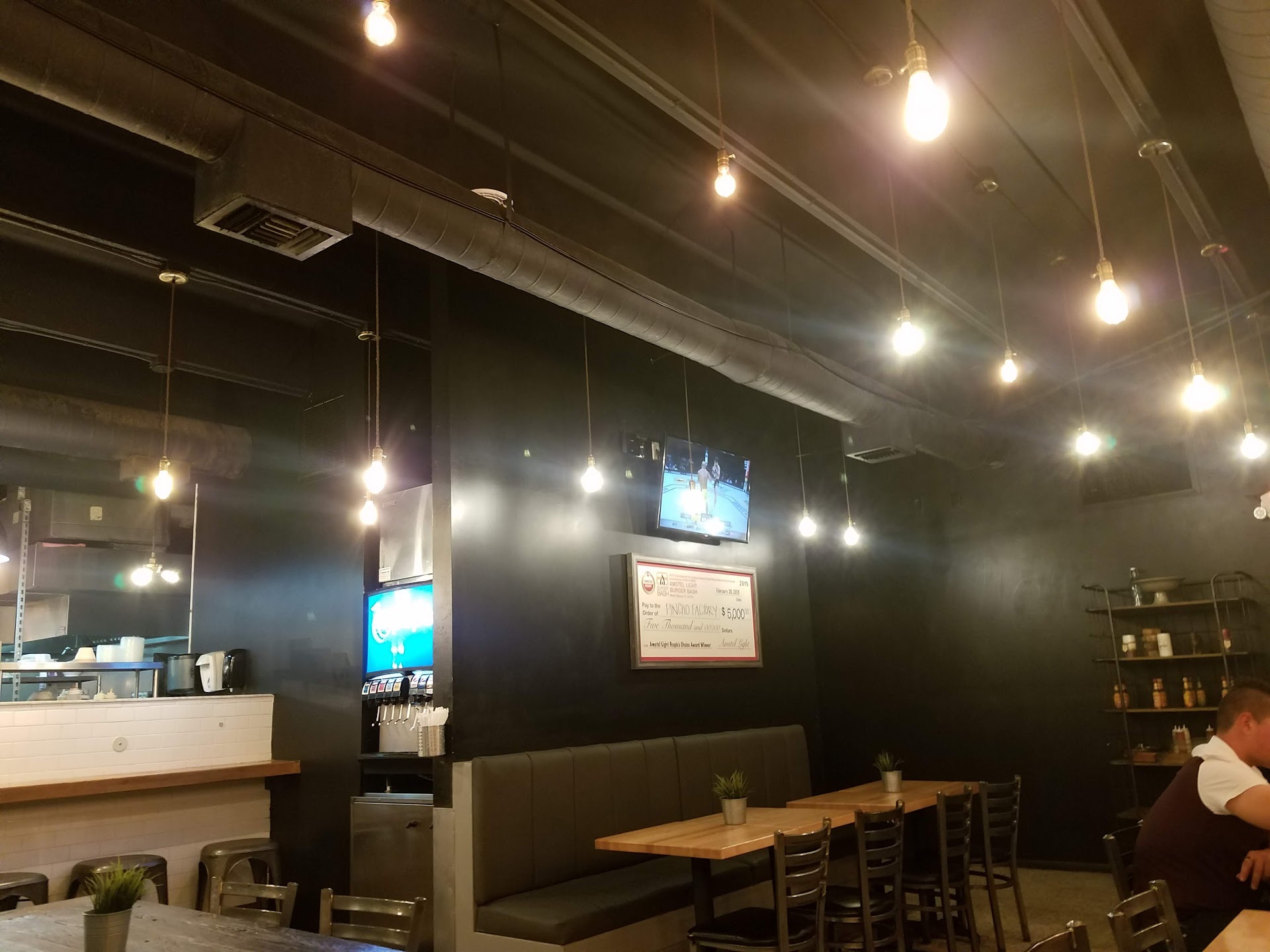 This might be too critical, but it's a burger place. Burgers are inherently messy. Please put napkins on every table. Also consider adding condiments as well to every table.