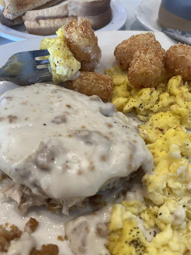 Read moreThe service is awful. This place seats maybe 35 people total. There were plenty of people who worked in the front of the house to handle a full restaurant. But, we waited 20 minutes for coffee and sweet tea. The water we asked the server for never came. We ordered breakfast. Steak and eggs (17.99) for my husband, hot cakes and eggs for me (14.99). My husband asked for his steak to be medium, it was more than well done, he also asked for an extra egg. We also ordered a side of tater tots. We waited about 45 minutes for the food. The eggs were not seasoned at all. The pancakes were a joke. They came with no butter and a splash of syrup with powdered sugar on top, they were about the width of a sand dollar and the thickness and color of cardboard. I ate about 3 bites of eggs and set the plate aside. Since the service sucked, the server never appeared to ask about the food. The irony being that during the wait for our food we were asked a few times how we were doing. Finally someone, the hostess maybe, asked if she could take the plate away. No ask about if something was wrong. My husband asked for the check, the server brought that and asked my husband if everything was good at that point. He said it was not and paid. The total was $60+ for a meal that was basically an insult for the price. The plate of food that was never eaten we still paid for. I know the place is new. There are a lot of kinks to work out. The seating, the service, the ability to get food out of the kitchen are all issues. The food is not worth the price. 4.99 for a single sweet tea, 3.99 for a coffee, neither of which were refilled. The whole experience felt like paying to be insulted. Find another place to...
