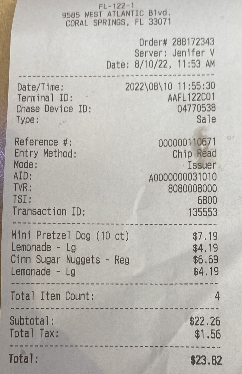 Read moreI ordered a mini dog bundle meal with a blue raspberry lemonade on my lunch break. When I went to sit and eat the pretzels were a little over cooked which I don’t like and also I took a drink and it tasted like the machine hasn’t been cleaned or the lemonade was sitting out passed due. I proceeded to get my money back but the manager gave me a big hassle and was very dismissive when I was trying to explain everything. I only was given a refund for the drink and not the whole meal and had to rebuy pretzel dogs I didn’t eat!!!!...