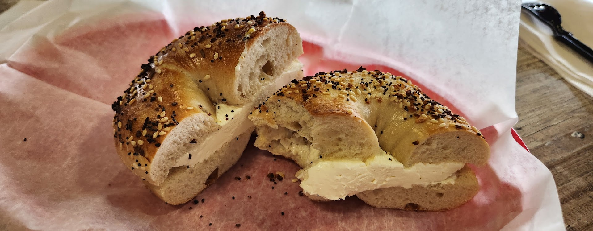 Read moreFirst time here, decided to give a local " best bagel around" restaurant a try. I've eaten my weight in bagel and at least twice that in cream cheese đ. I figured it would be ok but nowhere close to the best around. Knowing full well that best anything food related is subjective at best and paid advertisement at worst. Well I'm going to have to agree with the best around. At least with a 10 mile radius. That's saying a lot as this is Coral Springs and we have as many bagel shops as senior citizens and I've tried as many " bagels not seniors". The baseline is a toasted everything with cream cheese. Perfectly toasted while being soft yet slightly firm just under the crispy layer( think fresh playdough). The cream cheese was thick and has a slight tartness to it. Perfect for the everything bagel đ„Ż. The rest of the family had a bagel with egg and cheese, a sunflower flagel??