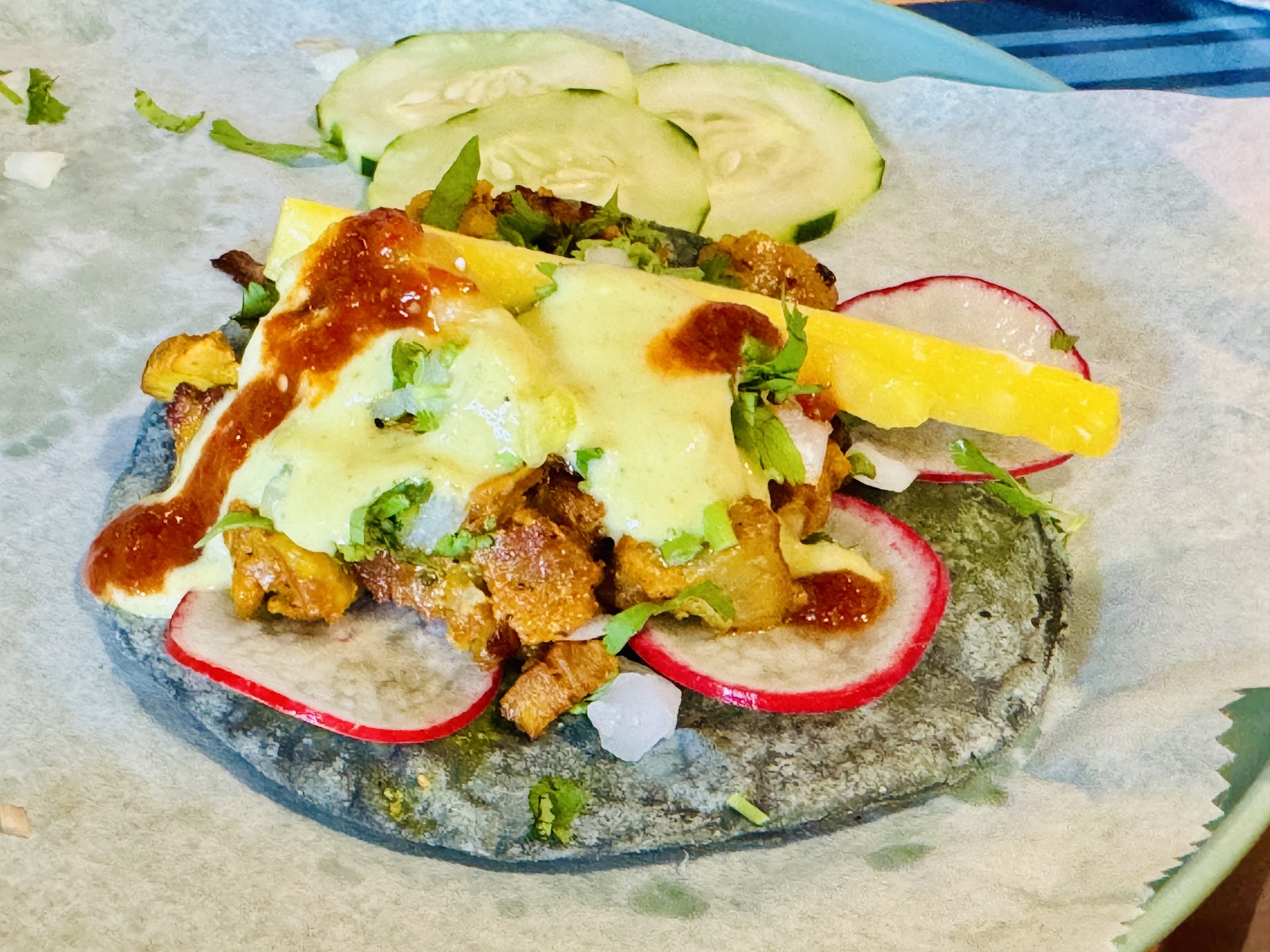 The menu may be limited right now, but the tacos they're serving are absolutely delicious. I had the carnitas, al pastor, and their standout quesabirria. The blue corn tortillas, which are brought in from Miami, take these tacos to the next level. Every bite was packed with flavor, and the giant servings of agua frescas are refreshing and complement the food perfectly. They've also got Taco Tuesday with $2 tacos--an absolute steal!