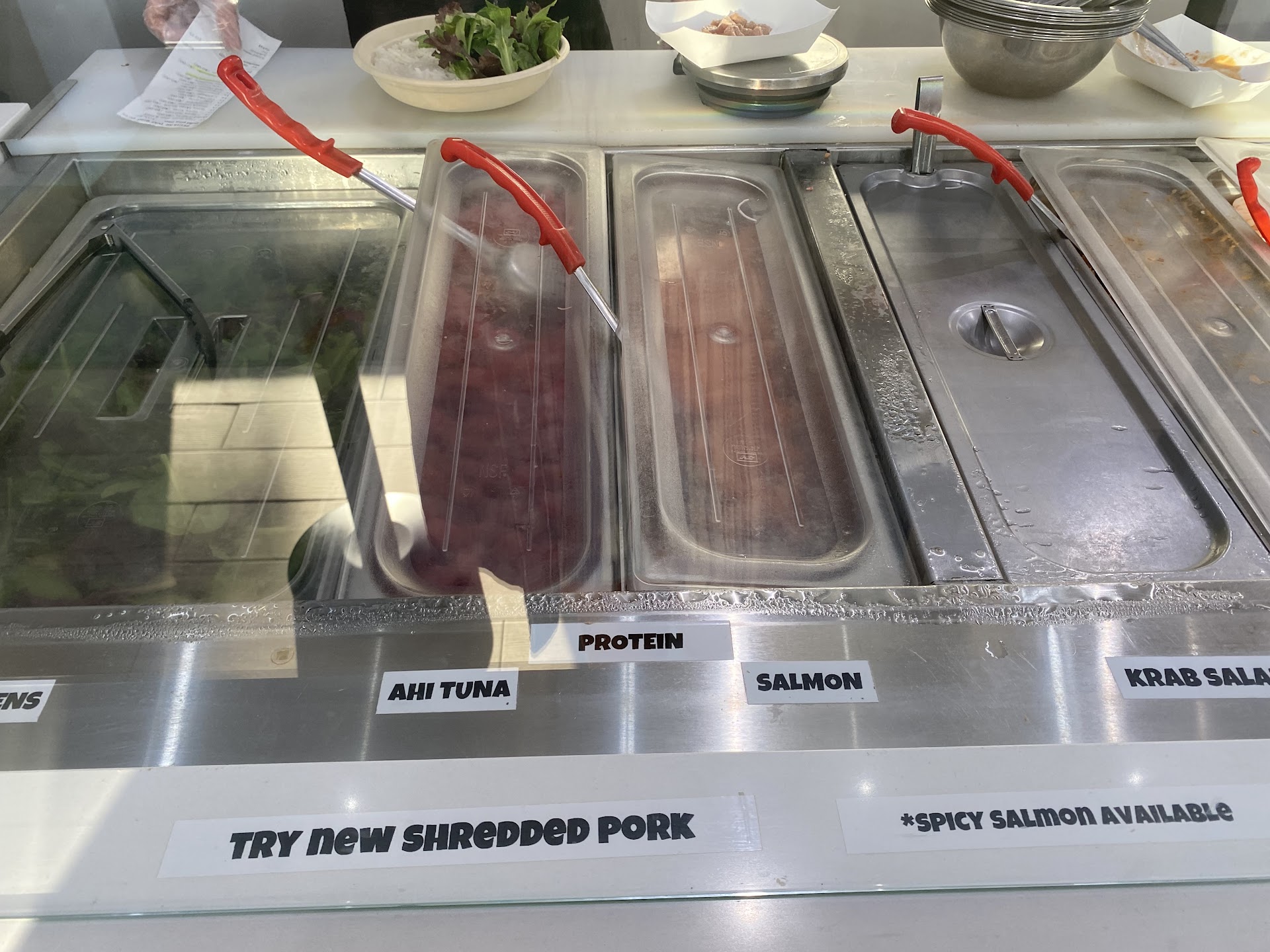 Read moreMy boyfriend and I went here for lunch based on the positive reviews. I’ve been to Poké places before but my boyfriend hasn’t. My boyfriend ordered a large bowl and I got a regular size to dine in. The prices were truly insane. Fifty cents for each sauce, fine I get it. Then for 1/4 of an avocado, it was $2. The avocado looked bad (it was precut into fours) and that is very extreme ($8 for ONE avocado). We both got chicken on our bowls (which was cut into less than appetizing looking cubes) and for some reason, the chicken tasted fishy (the probably mixed bowls with one that had been for fish). The toppings didn’t wow me (I’ve been places where they have a lot better options). The employee was a nice person but she also put two toppings my boyfriend didn’t ask for on his bowl (we didn’t say anything because we didn’t want to be difficult). Before we pay, we also decided to get “dessert” and asked for pineapple dole whip and the donuts they offer. Our bill came out to over $50 (before tip, which we still tipped of course). I was flabbergasted that for two people it was around $60+. Whatever, we sit down to eat and I have to say I have never instantly regretted a purchase like I did then. If the food was mind blowing, I wouldn’t mind the price point at all. But the bowls were something I could’ve made at home. The donuts were delicious I have to say and the dole whip was okay (a little too zesty but still decent). I totally respect people in the food industry and I am usually never a complainer. I am the type of person who you can get my entire order wrong usually and I will smile and tell you it’s great. But I honestly felt very put off by the quality and price. I will never come back here again, it’s just not worth it...
