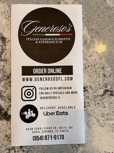 Generoso's Italian Sandwhich Shoppe & Espresso Bar6230 Coral Ridge Dr Suite 106, Coral Springs, FL 33076
