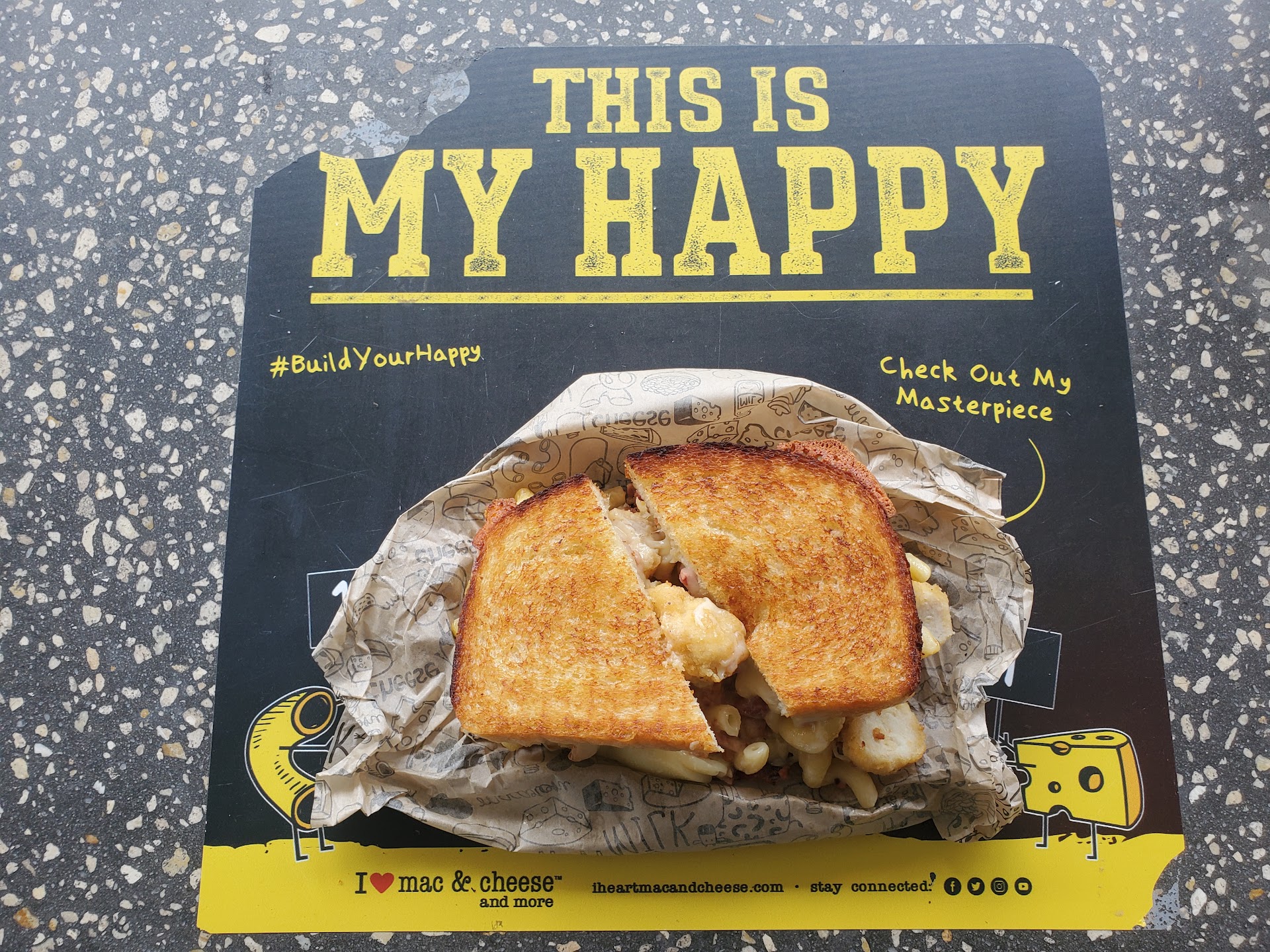 The chain, which I have never been to (because I avoid chains) focuses on build-your-own mac and cheese and grilled cheeses. I went old school ā plain grilled cheese on sourdough. I chose the only two āplainā cheeses they had, which were white and yellow cheddar, which do not melt like processed cheese, and cheddar tends to get oily when it melts. They also use butter on the toast instead of mayo, which most diners (and I) use to make the sandwich, which tends to make it greasier.