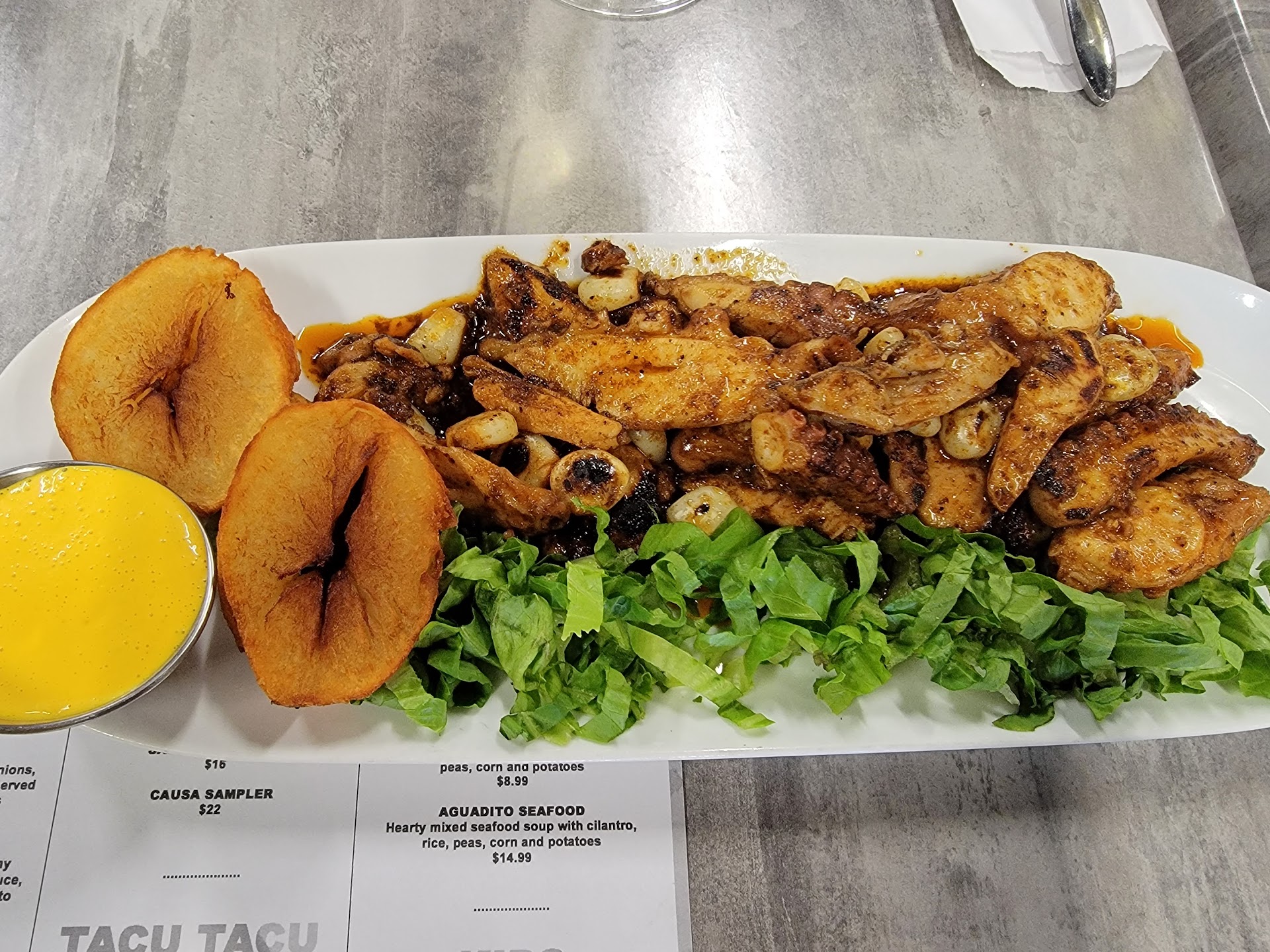 We had a party of four.. The service was horrible. We felt bad for the waitress Gimena, she was stressed and had no help. The Tiradito de Rocoto and the Tacu Tacu de Lomo Saltado was okay but the Trilogia Mixta was a mess. It came with three types of ceviches that was tasteless and we left it mostly untouched since it seemed like it was just thawed out. The Mixta also came with a Jalea variation that was edible when dipping it into the Rocoto sauce from the Tiradito or the tarter sauce. The food took a long time to come and once we were still hungry, we ordered another Tacu Tacu de Lomo Saltado and a Shrimp Causa that ended up taking another 40 mins to arrive. They did such a shameful job on their Causa.. Aside from the sad taste of it, it was like they just threw it together on a Dirty Plate that had not been washed in days!!! It was a struggle to get our waters refilled along with having the option to order more beverages since staff barely came to check on us. For a good majority of the time, there were many tables that were never cleared along with our own plates that they just left on our table after we finished. Luckily there was a shift change at 4pm which service started to pick up a bit as we were nearing the end of our First...