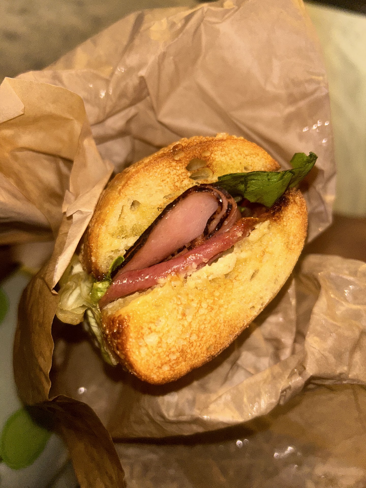 As you enter you'll notice it's relatively quiet despite being quite a large venue. There's typically a small line ahead so expect to be waiting a few minutes. This will give you an opportunity to look over their menu which include various sandwiches, soups, salads and more. I would consider the prices to be a little steep based on the portion size but you will definitely receive a quality meal. Food will take a few minutes to prepare so you'll get a buzzer to indicate when your order is up.