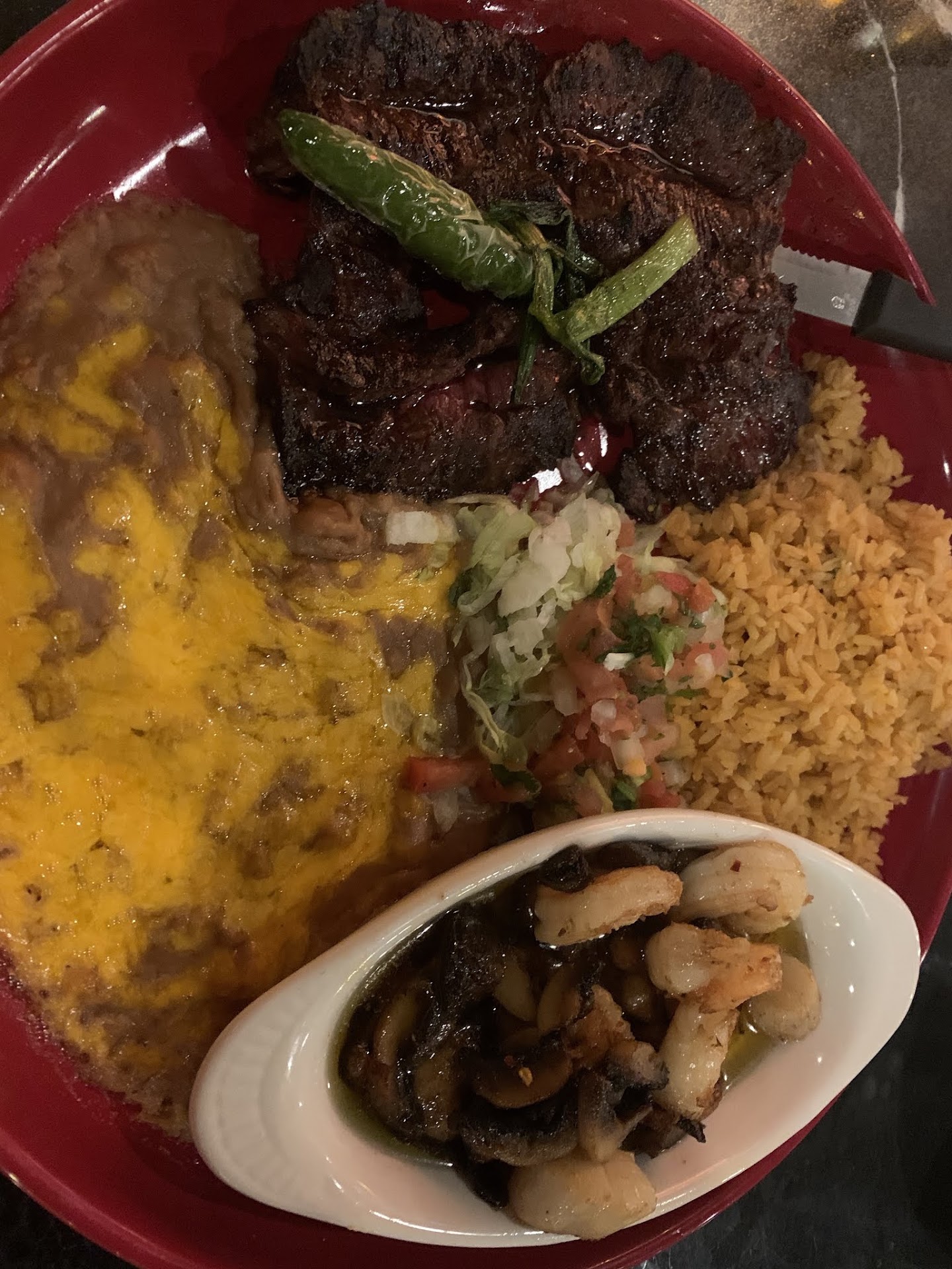 On to the really important stuff - the chips and salsa were ok. The salsa did lack a bit of salt but we took care of that. Angela later brought out the refried bean dip and that was delicious, wait until they bring this out, you will not be disappointed. For my entree I had the Dos Amigos burritos and it was delicious, bursting with flavor, and a tad spicy which I LOVED. My wife had the Carne Assada y Mojo with a side of shrimp and scallops which I tried and also found to be delicious. For dessert my daughter ordered what I can only describe as fried dough with powdered sugar covered in honey and that was amazing as well.