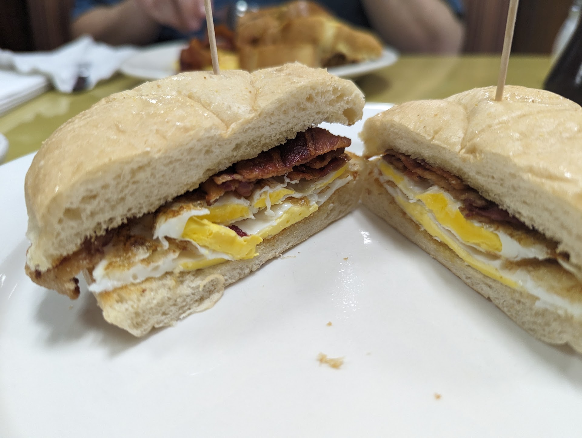 The egg sandwich has the right amount of bacon for eggs. If the egg had been just a bit runnier it would have been a perfect NYC deli sandwich. Crispy and gooey. Notes for the chef!
