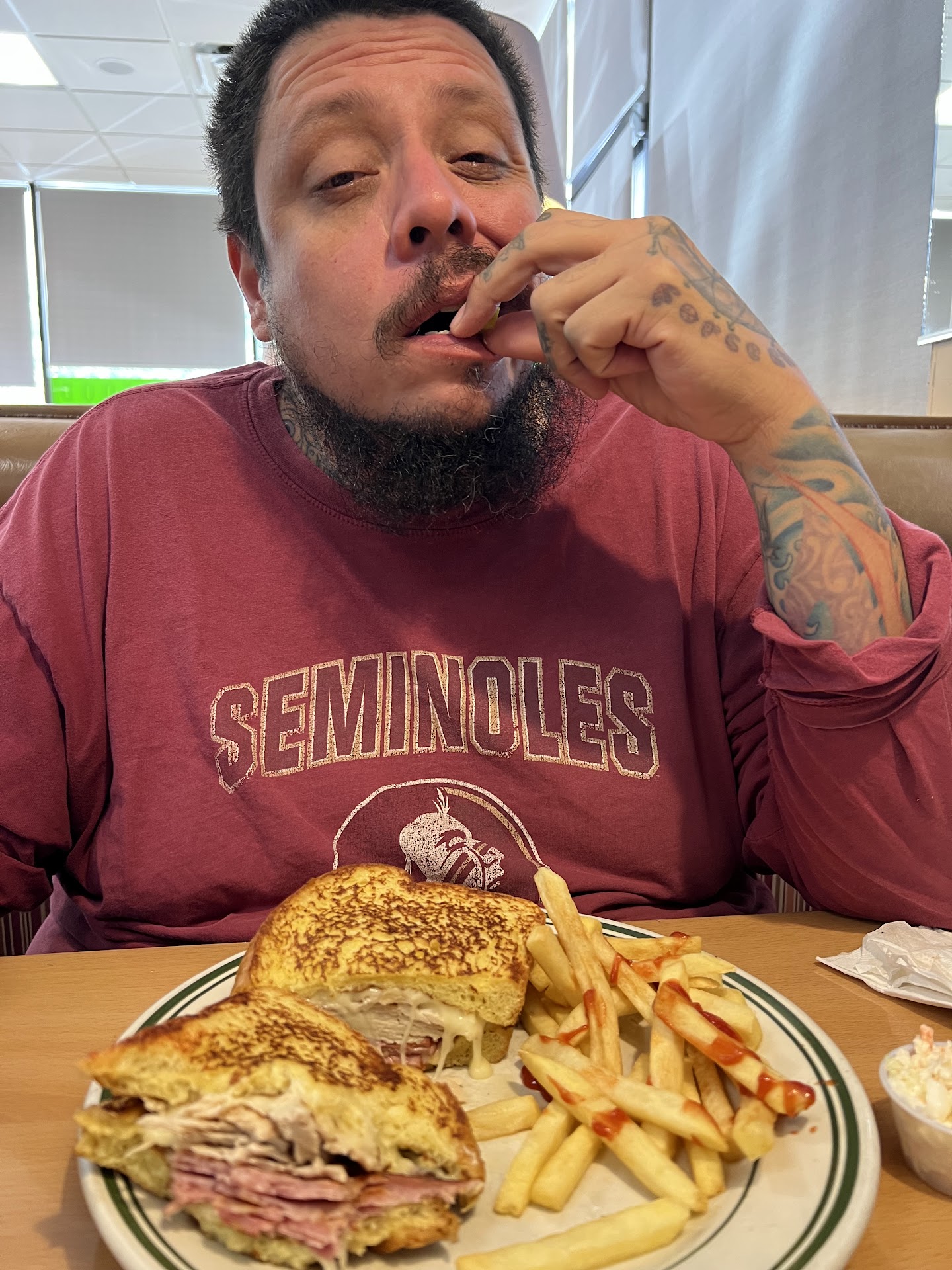 The 2-2-2 came out good, the French toast was soft on the inside and crispy on the outside. We just wish there was more flavor. More cinnamon.