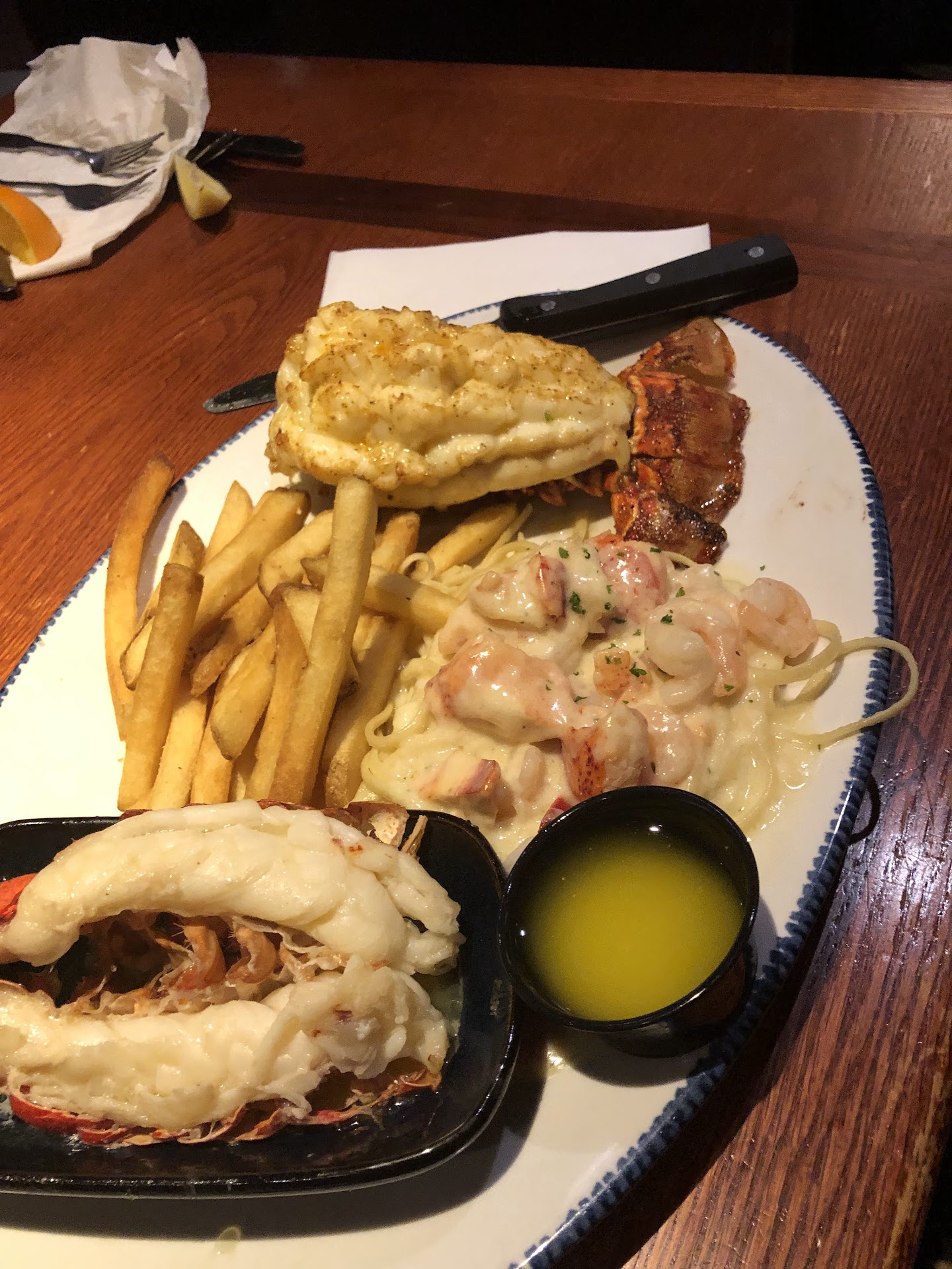 Read moreGoogle asked me how my experience at Red Lobster was. 2 words: NOT GOOD. It seems the Coral Springs location primarily employs teens and high schoolers/students. Which is fine if there is someone present to oversee them. Also I do not mind a place employing teens as I have 4 teens myself. BUT their age requires supervision since for most teens something like this is there first job and they need guidance on professionalism. While waiting the hostess and another girl cleaning the bar area gushed about one of their puerto rican and jamaican new "man" while simultaneously texting said man, the hostess jokingly argued with a new busser she stated that her high school was closed on Friday's and she mocked him for having school that day, then at one point the busser sat down in front of the rest room and the hostess kept aggressively telling him to get up because if she could not sit, neither could he at which time she stated she had arrived at 11 that morning... it was after 9 p.m.. The same hostess and girl cleaning the bar talked about how multiple cooks called out, the kitchen was backed up, and that after being seated there would be an hour wait for food at the table. The entire 20-25 minute wait no one manager was present. Finally, we get seated at a 6 top round table that had extension pieces on it, it was supposed to be a romantic dinner for me and my boyfriends 4 year anniversary. The table extension pieces for bent downward and everything kept sliding off the table. We had a great server- super nice and accommodating. I want to say his name was Davonte? We decided to place our order for the crab cheese fries, endless shrimp and cajun chicken pasta. I also ordered a $5.00 margarita. Our entrees came out cold and within minutes. Long before our appetizer ever arrived. This baffled me because supposedly there was a kitchen backup and long wait for food. We asked for our app and it finally came out and it tasted like someone dumped an entire bottle of lemon juice on it and barely had crab as well as being cold too. It took 20 minutes for my drink to arrive and then it was water.. no alcohol and had something black floating in it so I sent it back without wanting a replacement. Our server offered us a discount that we never actually got. He did however go to great lengths to help us put the extension pieces down on our table to stop everything from sliding off. Also we got baited into signing up for the rewards and never got our 10% off. We took the fries home and whatever else we did not eat. They also offered us a complimentary picture, then tried to charge us 20 dollars and ultimately gave us one that had Red Lobster food pictures all around it. Overall just not what we expect from a place that boasts as a "finer" dining...