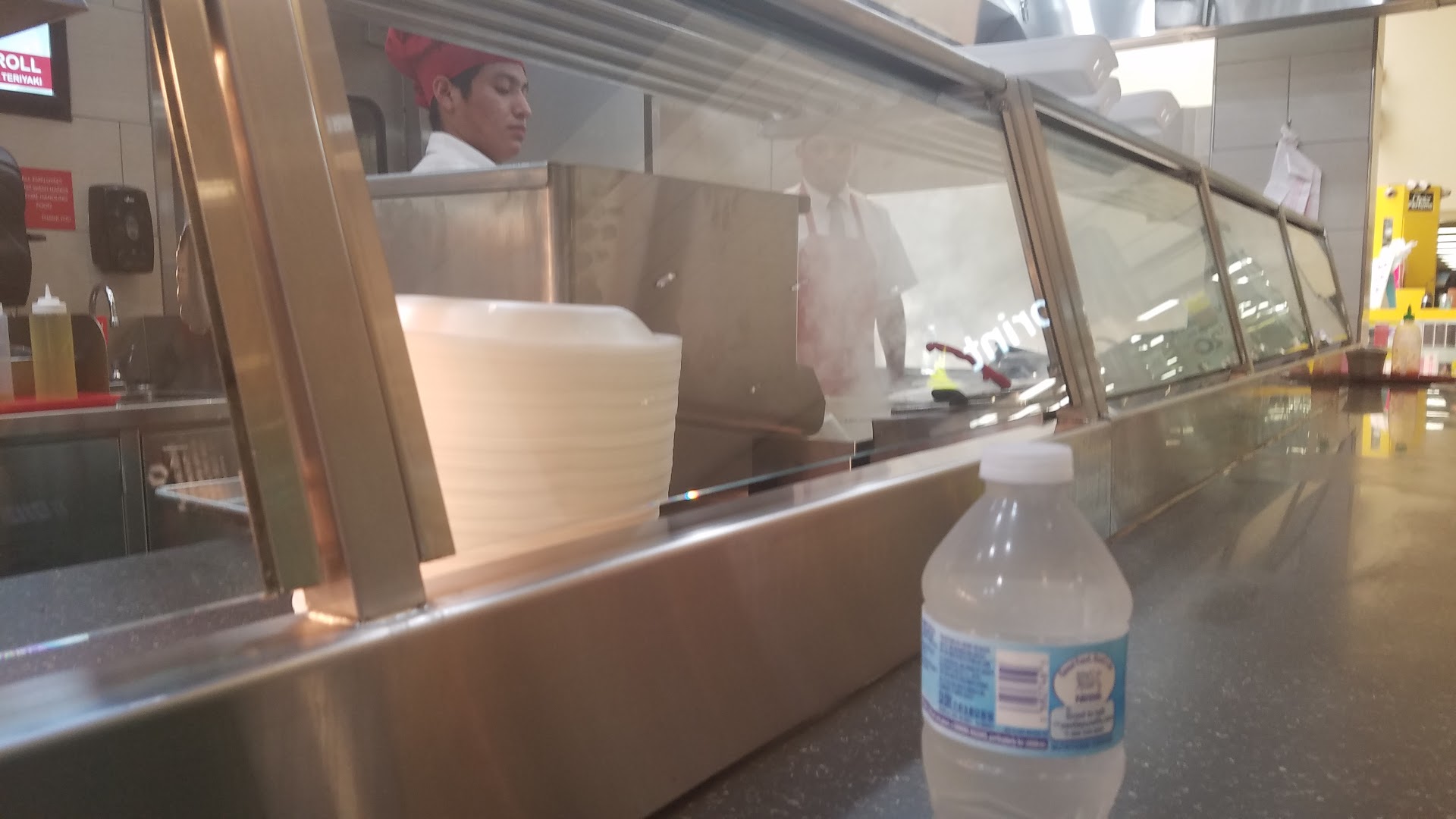 Read moreTbh the food sometimes is ok, if you're really hungry and want to eat bad. I read the others reviews and yes the mentioned female staff member (skinny girl) seems to be unfriendly, sometimes she's nice and other times she looks miserable. There is also another gentleman (Caucasian looking) who is young unshaven, has greasy hair, etc.who seems to have a chip on his shoulder when taking my order. I try to avoid him. Other than that the only compliment I would go be it's to the young gentleman who makes the sushi, very friendly and professional.