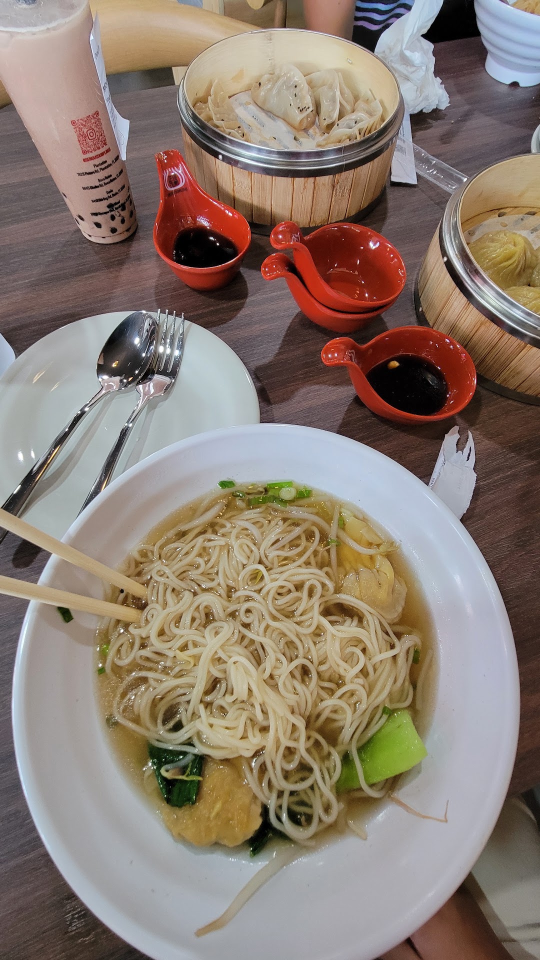 Edit: wontons (6, smallish) and noodles good, broth dark and salty, heavily seasoned with soy sauce. Dumpling King’s version is far superior with a more delicate broth, seaweed, egg strips, and more wontons.