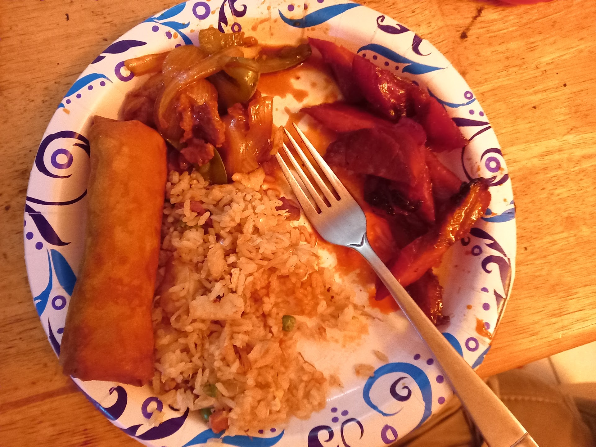 As far as the food is concerned it was better than many of the Chinese restaurants in town. Many places now offer pork fried rice as yellow rice with peas and carrots. Hardly real fried rice. This fried rice was tan in color, actually included pork not diced ham, had no peas or carrots, and did have onions, scallions, and egg.