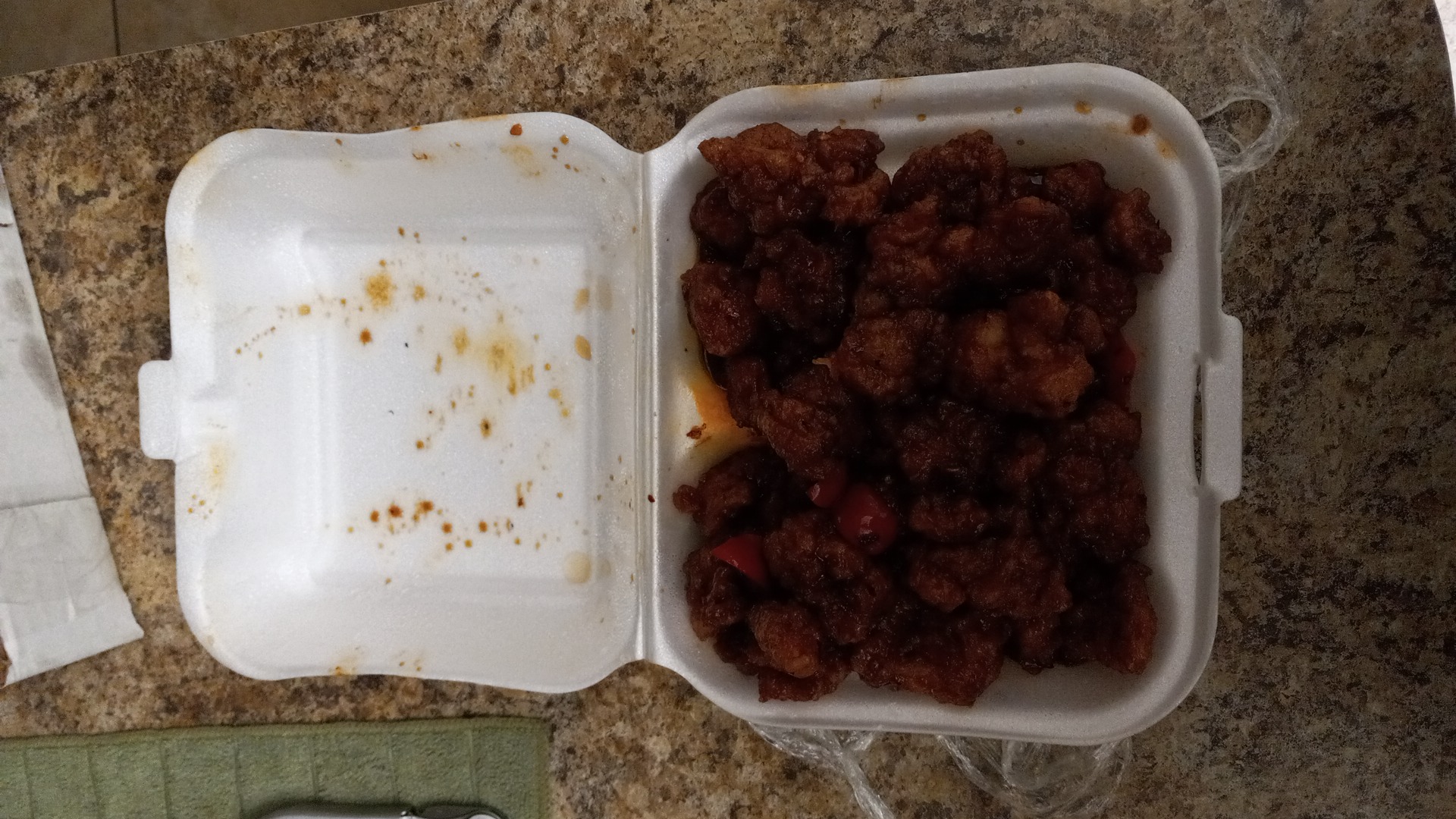 This place has no atmosphere because it's take out only so when you walk in the door there's a simple counter for you to get your food. The food was ready on time and there seem to be a suitable portion.