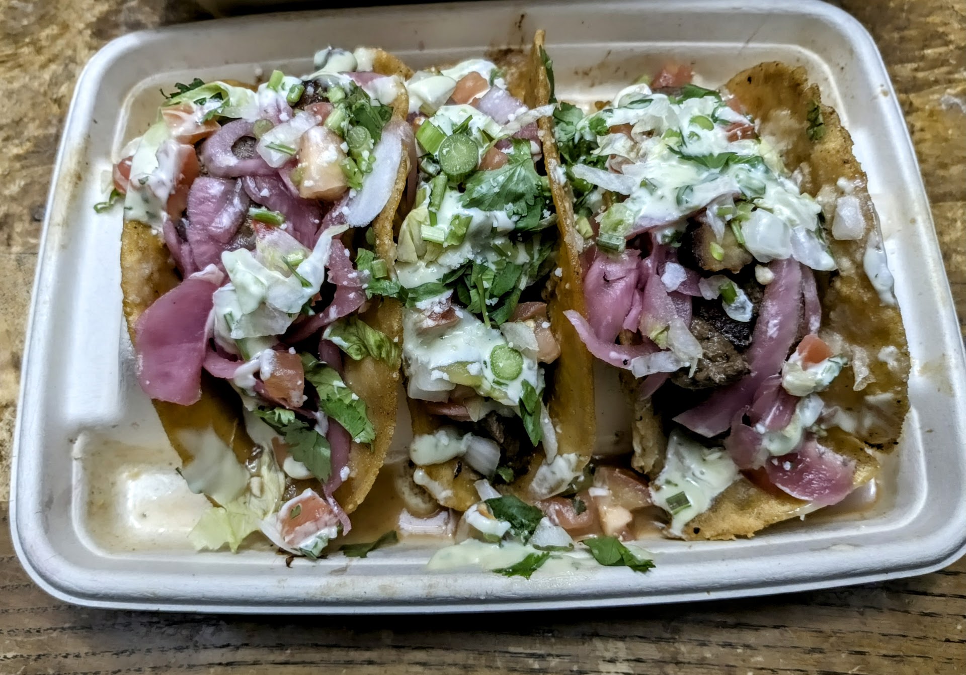 Read moreCame here today after hearing how great the place is and that theyâre also new. We did carry-out and they were very busy inside with takeout and dine-ins. So my siblings and i together ordered one bang bang shrimp taco, one Caribbean taco, one quesa birria, one blue mint lemonade. So hereâs how everyone felt, I enjoyed the bang bang shrimp taco it was delicious. My sister enjoyed her Caribbean taco and i had one and it wasnât bad but not the best. My brother enjoyed his quesa birria as well. Now he got the blue mint lemonade and I tried it as well as my sister and we all thought it was disgusting. It was a sad excuse of a beverage. Didnt taste like lemonade nor did it have any minty taste to it. It was just a bland powder blue liquid. So I wouldnât recommend this at all. The portions are awful as hell. They charge all this money for an empty taco that is flavorful and thats it. The shrimps and steak were so tiny chopped up bite sized pieces. I didnt like how they threw tortilla chips on top of my brothers quesa birria it could have been put on the side and presented better or in a separate container. It didnt look cheesy at all as they advertise online. For being new im very impressed with the taste of the food but disappointed in the amount in the tacos. Keep the meat and shrimp whole not diced and add more cheese. My tacos also werent hot and finished way before my pickup time. So it shows that they made it super early and left it to freeze until I arrived. Thats completely unprofessional, now with this all being said i may and may not come back. If the portions arenât fixed and the beverage and presentation then why waste my money. For me taste isnt everything when i get food I consider everything to consider...