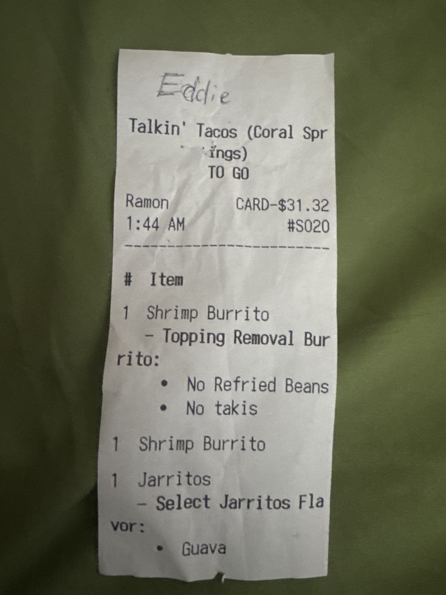 Minutes later, a delivery driver arrived and knocked. Eddie immediately acknowledged him, verified his order, opened the door, and handed him food -- all while continuing to ignore my simple request for hot sauce. I called Eddie out for being extremely disrespectful, especially considering my food had just been served and I wasn't asking for anything unreasonable. His response? "Why do you even need sauce?" Then he shut the door on me and walked away.