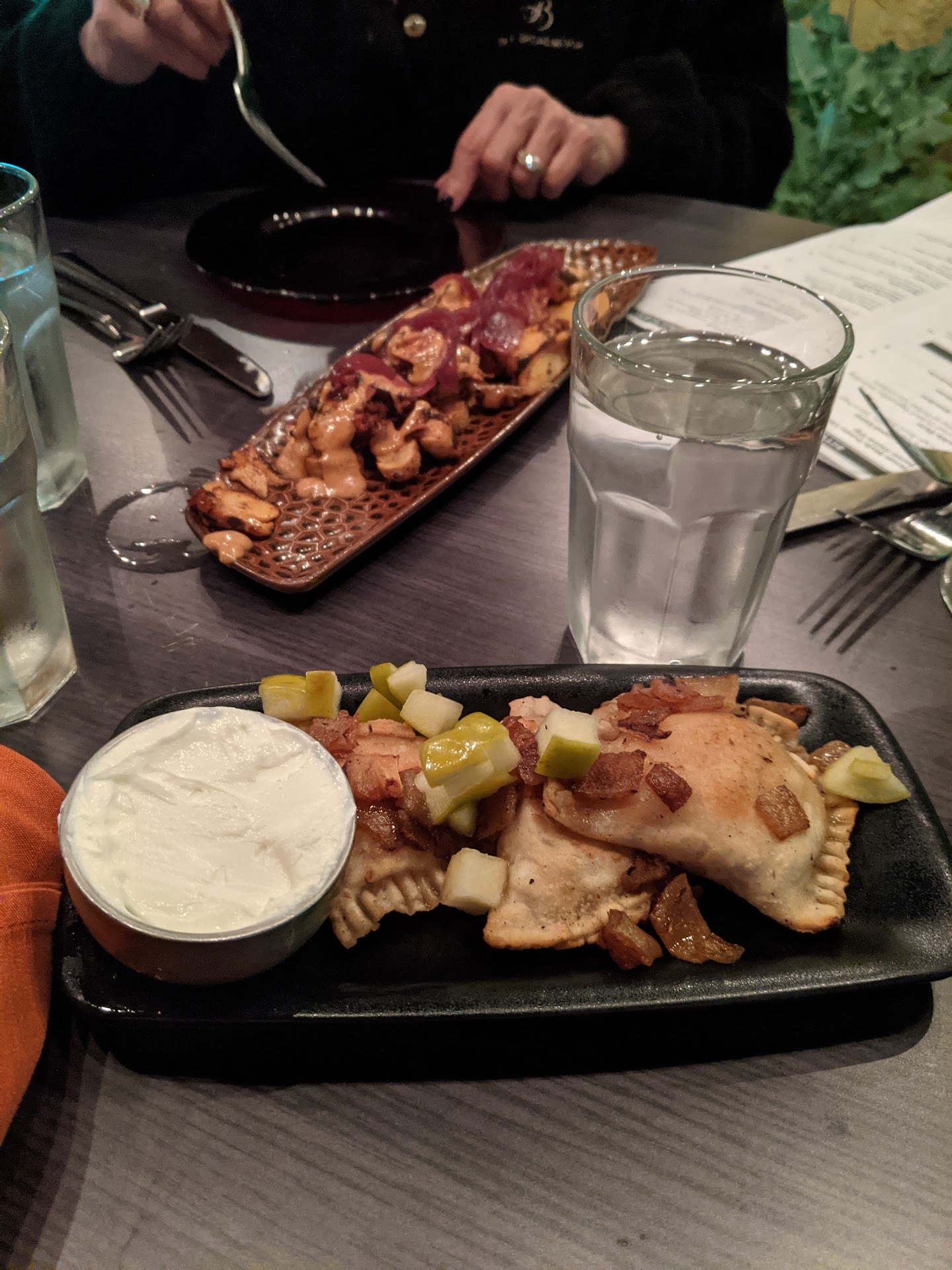 Love this place. Their chips and dip is something we get almost every time. I'm trying to copy it, getting pretty close but not there yet. Hubs absolutely loves their short ribs and gets them pretty much every time. We both like the KFC, Korean fried chicken. I got the risotto small plates soecial and the beets and greens salad this time. Both were great. I've gotten the duck confit before and it was yummy. Our doggies love the biscuits they make too, but they have been out the last couple of times we were there. I need to remember to ask ahead...