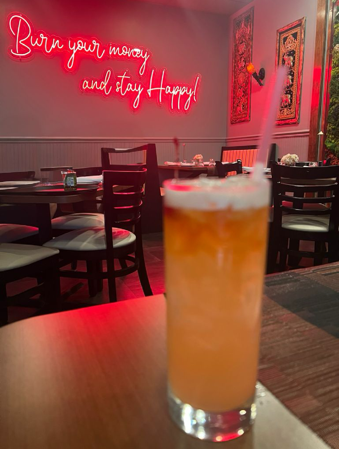 And the cocktails? Wild. There’s a TomYum drink with galangal, lemongrass, Thai chili, kaffir lime leaves, Stoli Lime vodka, tequila, lemonade, and lime juice. It’s no joke—delicious, intense, and unforgettable. It’s also spicy due to the muddled chile pepper but they can tone it down on request.