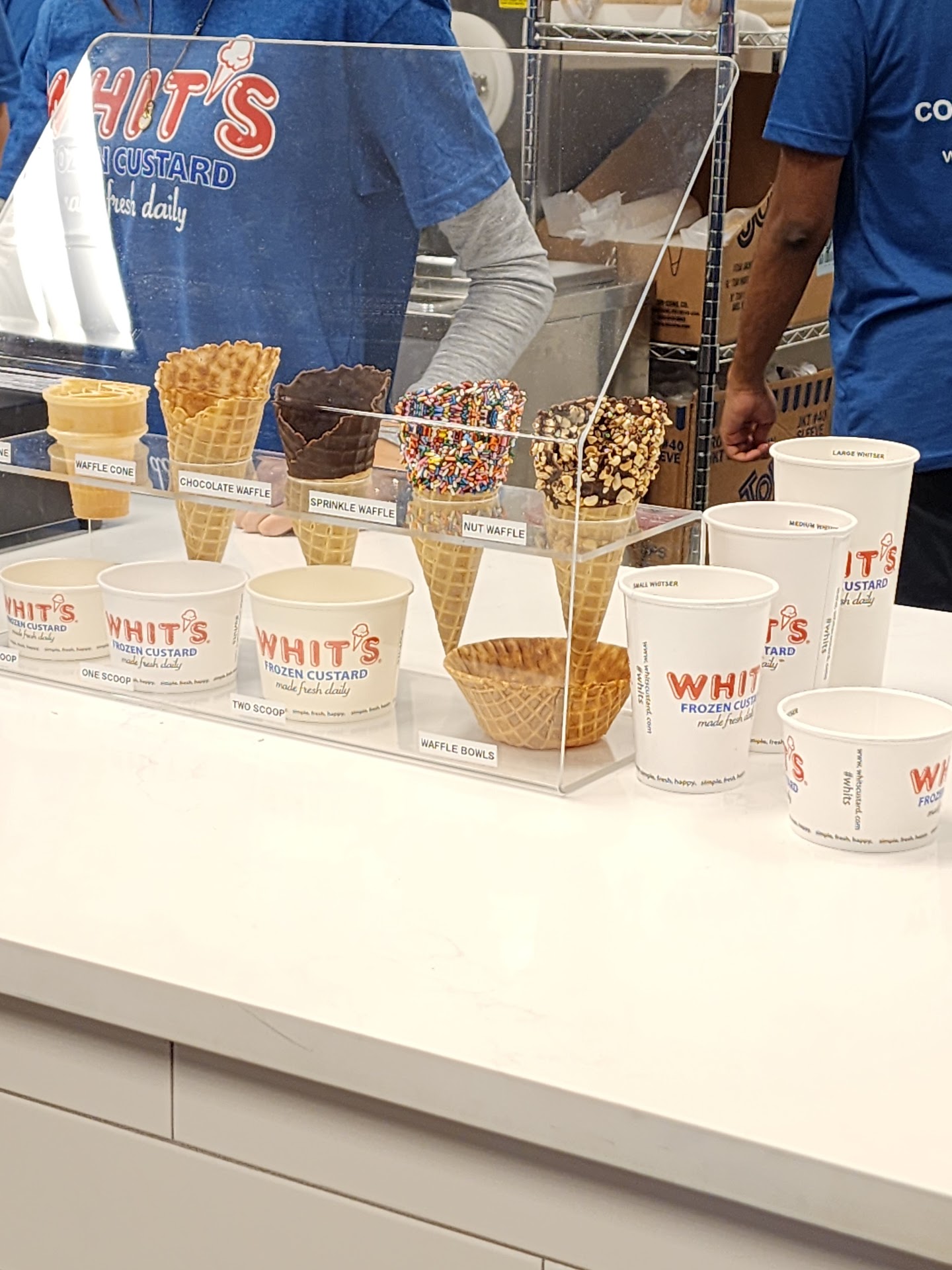 The highlight of our visits is Adam! He always makes it a point to greet everyone with a smile & a quip to make them laugh-or at least smile. Adam oversees the other employees to ensure everything runs smoothly in an effort to give the best customer service; and, in our opinion, he always succeeds! We always miss him when he’s not there! Thank you Whit’s, for him & all the other excellent employees + the yummy custard, that make Whit’s our go-to...